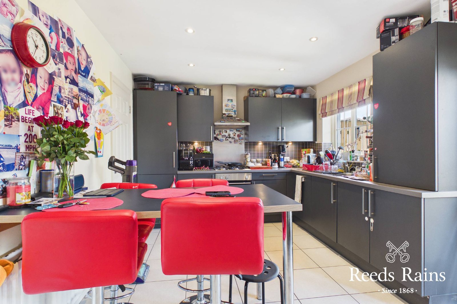Single drainer stainless steel sink unit with mixer taps, excellent range of high and low level units, tiled splash back, concealed gas boiler, recessed spotlights, integrated dishwasher, integrated fridge freezer, stainless steel built in oven and four ring hob, stainless steel chimney extractor fan, ample dining area, double glazed French doors to rear garden.