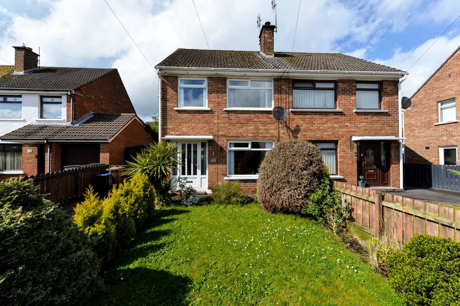 Front garden in lawns and shrubs.