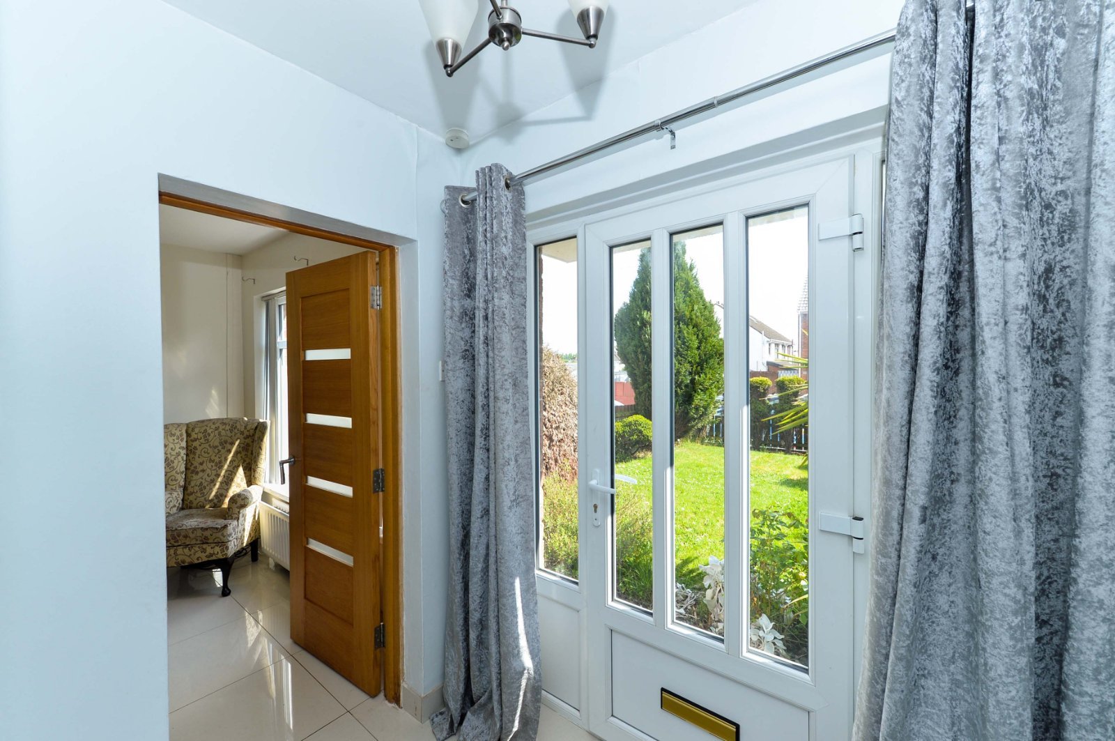 uPVC double glazed front door and double glazed side panel to entrance hall, ceramic tiled floor.