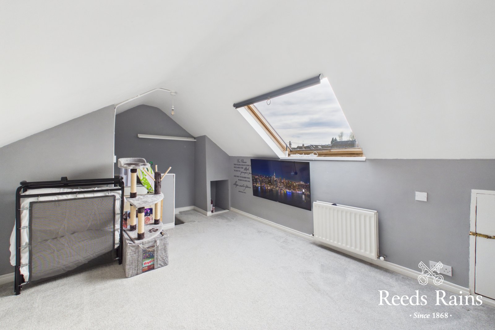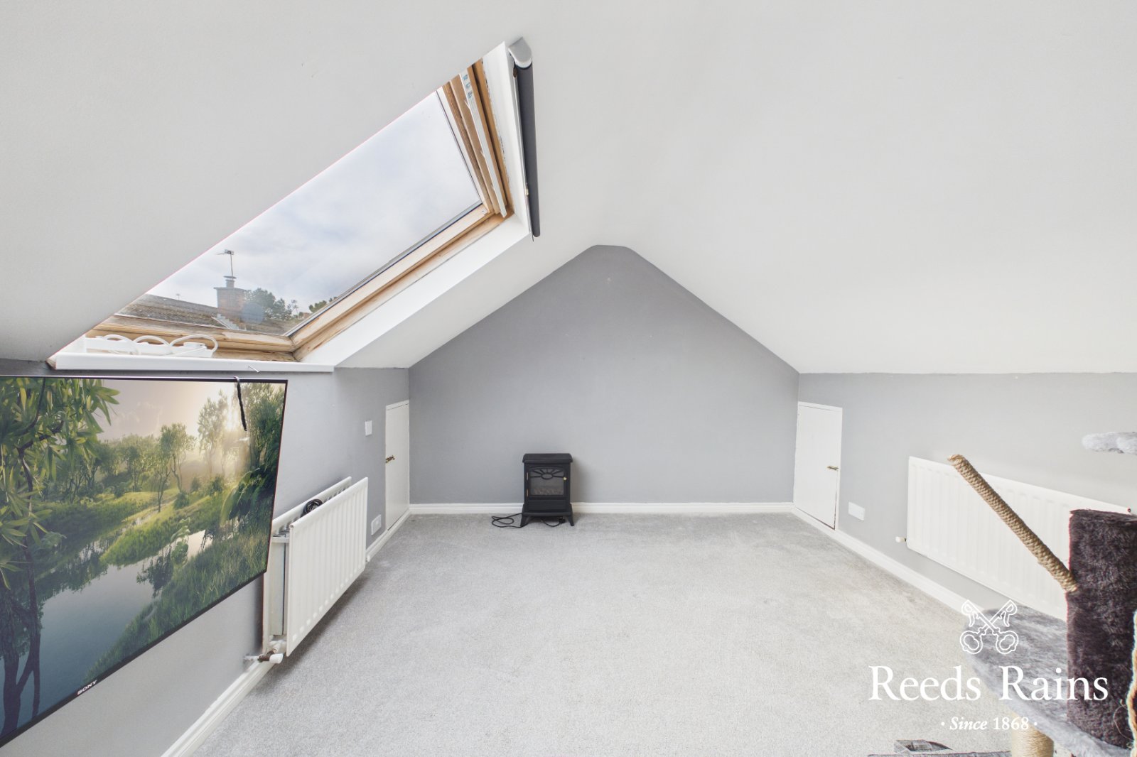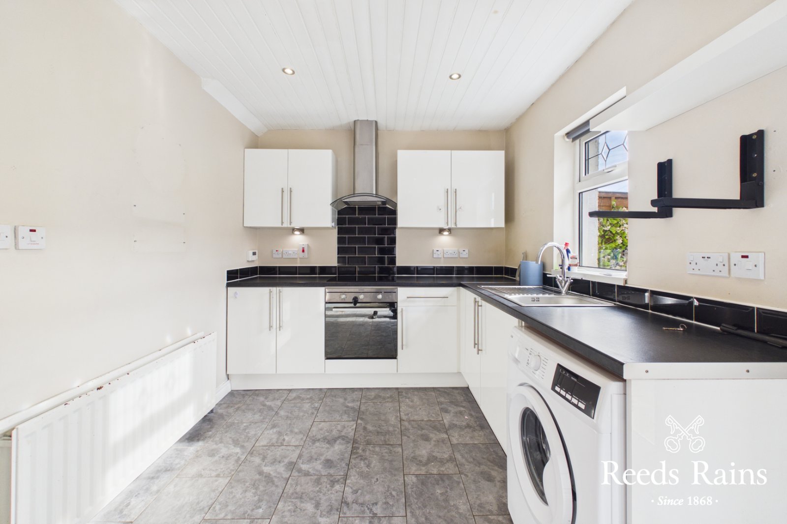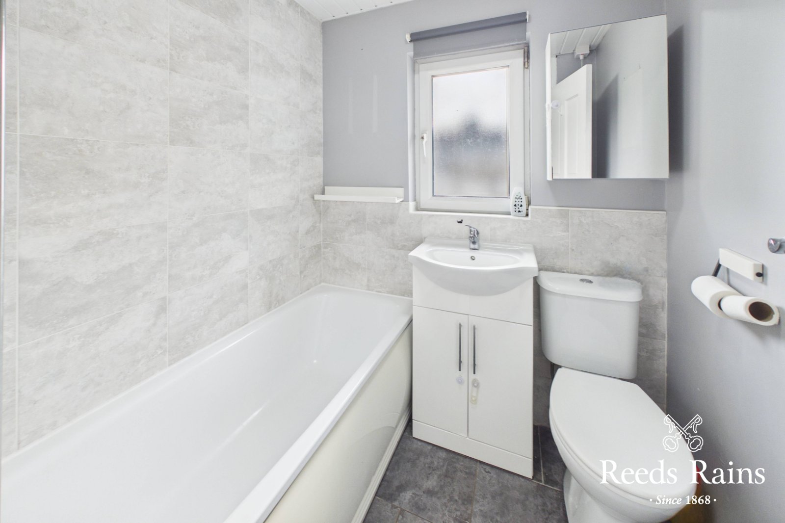 Internally the property features a living room, open to kitchen, 3 first floor bedrooms, a floored roof space and a bathroom with white suite. Externally there are gardens to front and rear.