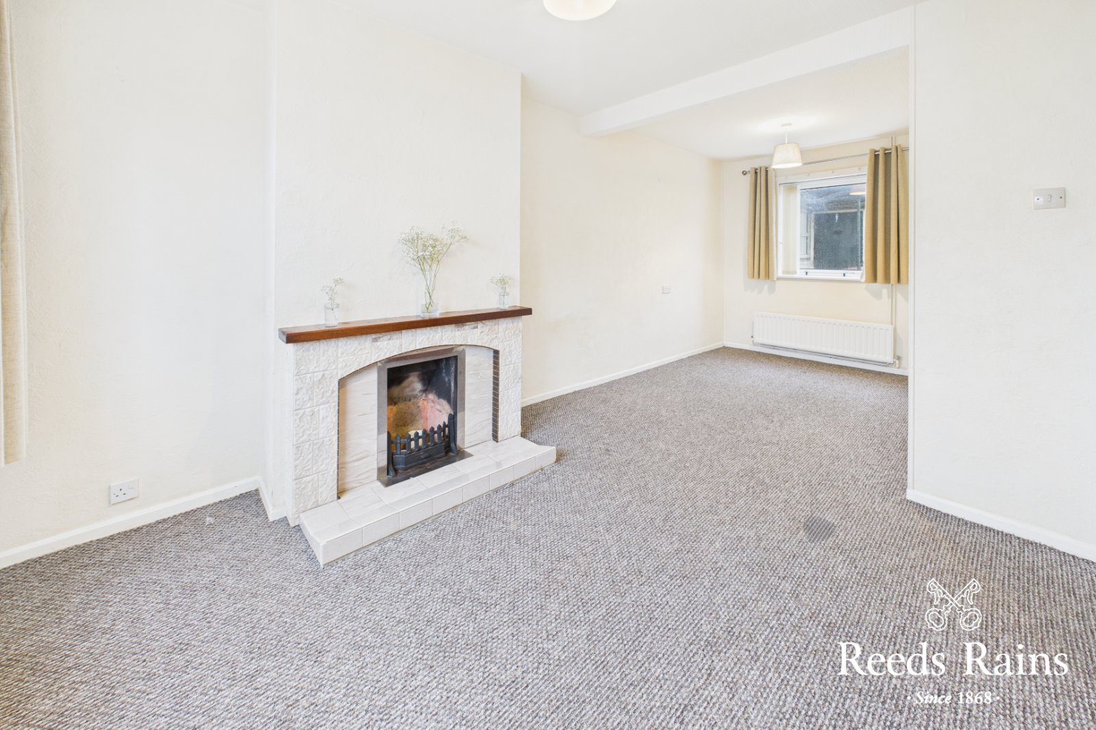 Spacious living room with feature fireplace, tiled inset and hearth. Open to dining room.