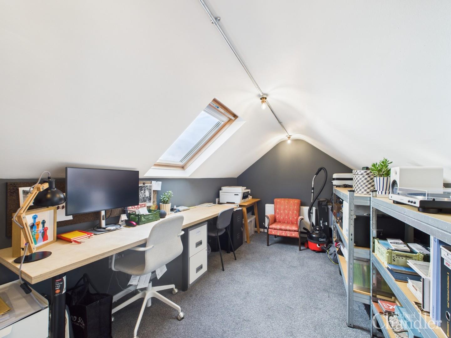 The property is completed by a generous floored roof space located via a fixed staircase, ideal for storage.