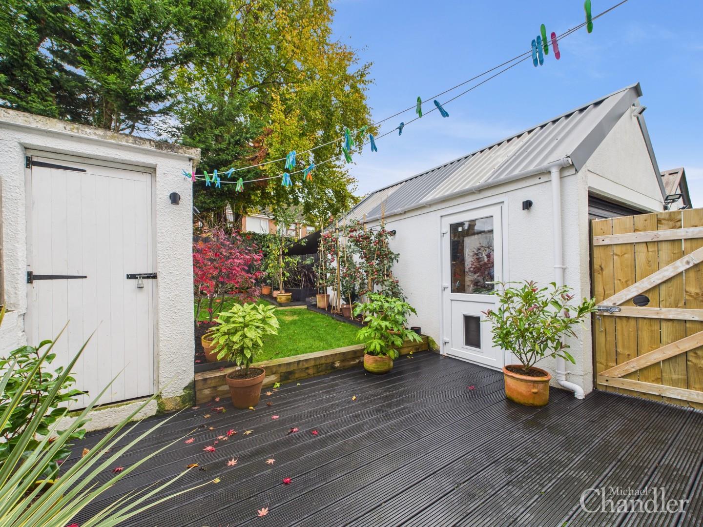 Outside, the front garden has a small area laid in lawn and a large tarmac parking area for two - three cars. The fully enclosed rear garden offers space to relax after a busy day with a small lawn area, flowerbeds and a private decked area .