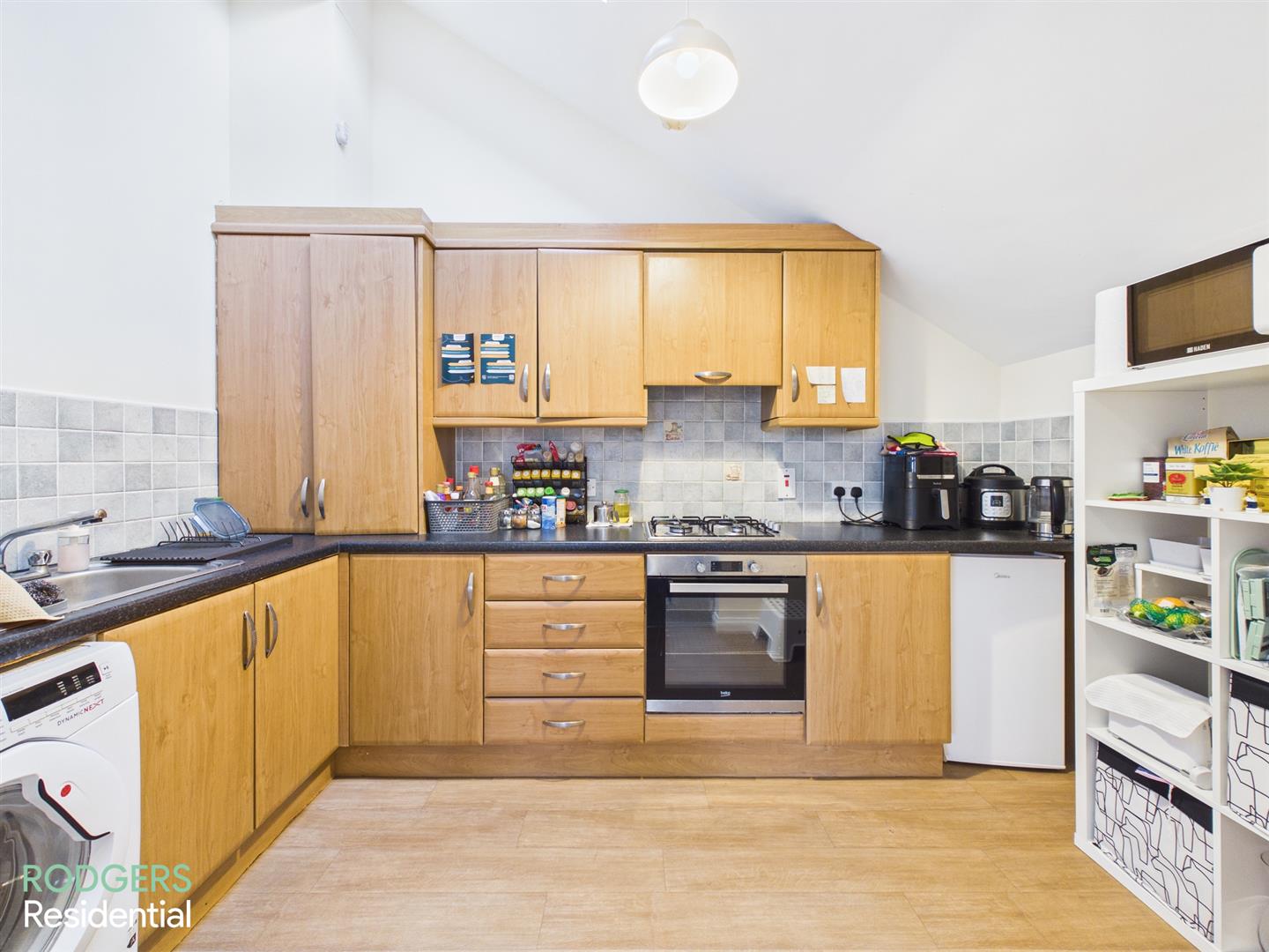 A Range of High & Low Laminated Cabinet Units With Chrome Handles, Wood Laminated Work Surfaces, Double Sink With Half Drainer & Chrome Mixer Tap, Four Ring Gas Hob, Electric Oven, Space For Washer/Drier, Space For Fridge/Freezer, Wood Laminated Flooring