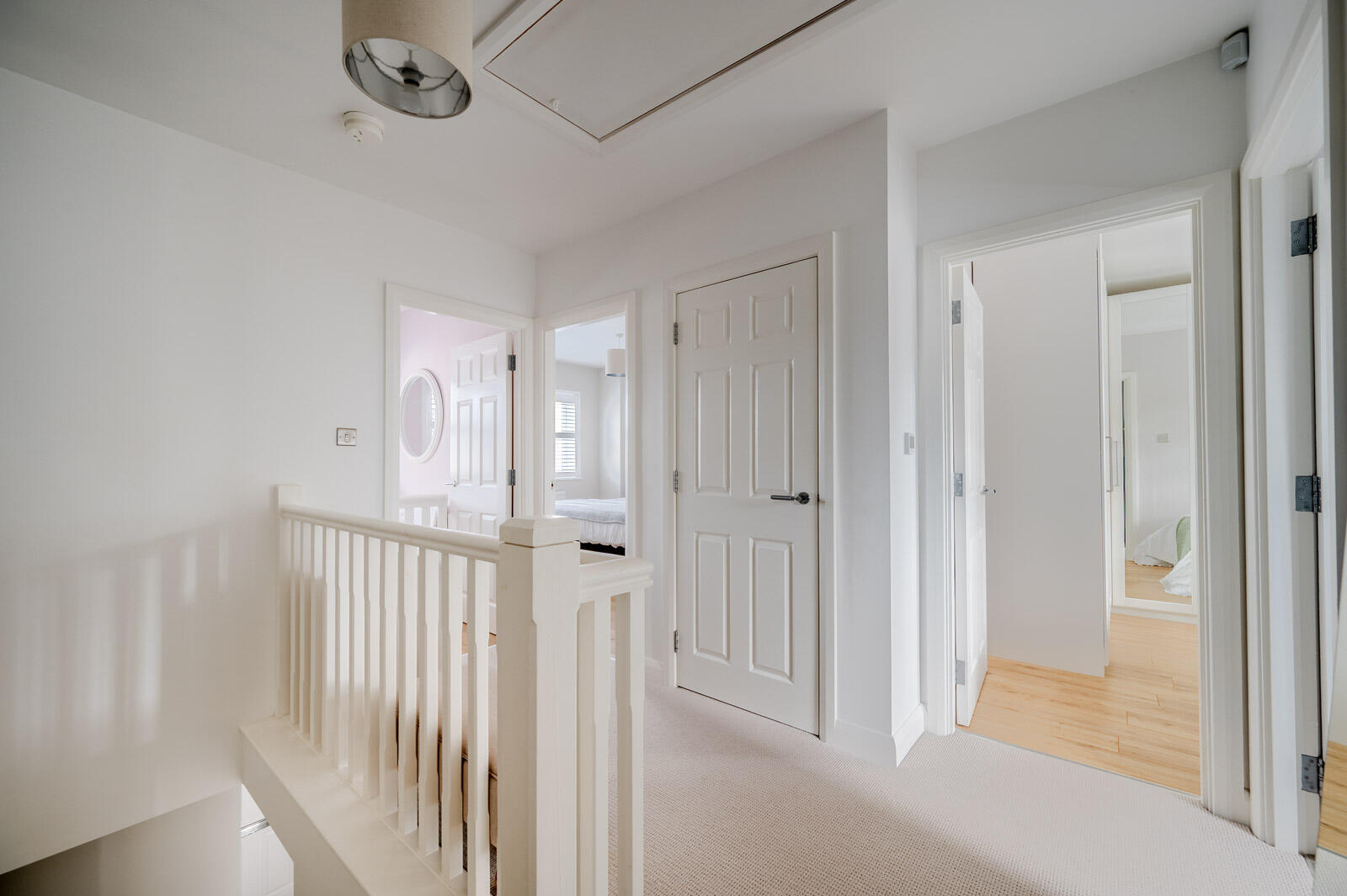 Upstairs, three well-proportioned bedrooms provide comfortable retreats, complemented by a beautifully finished family bathroom. The primary bedroom enjoys a front-facing outlook, while the rear rooms capture those sweeping rural vistas, offering a calming backdrop at any time of day.