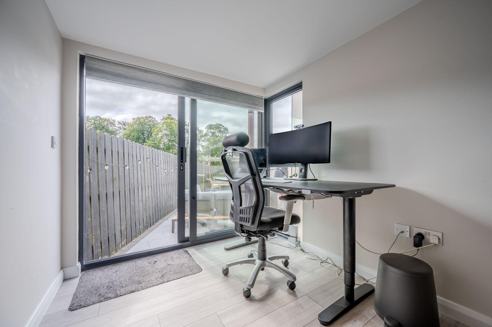 Perfect for working from home, laminate flooring, sliding doors to garden.