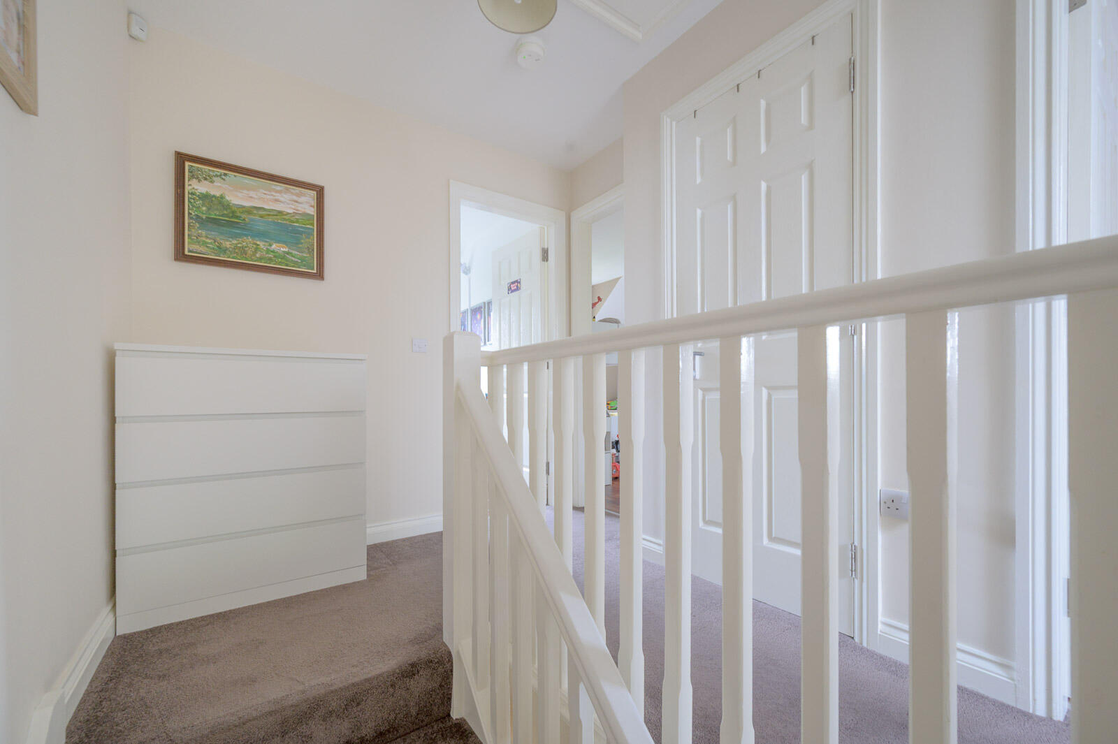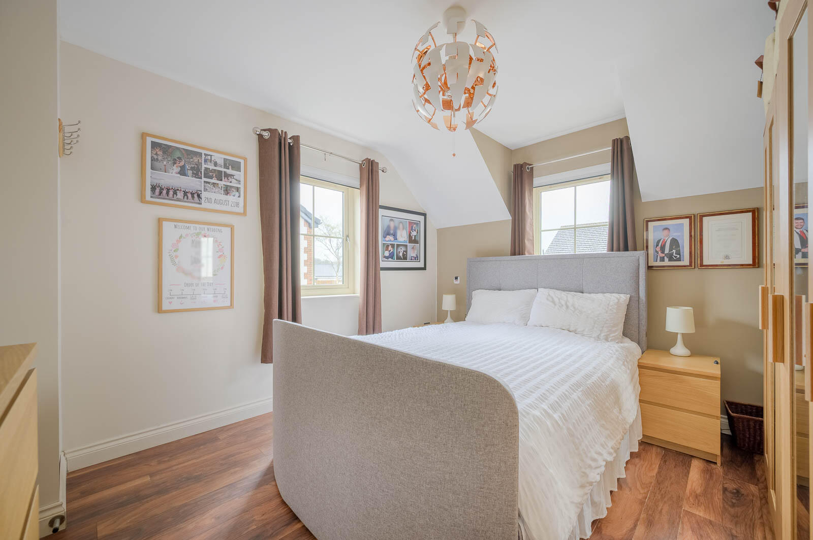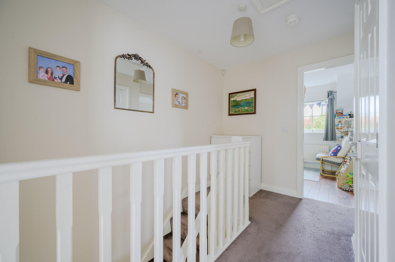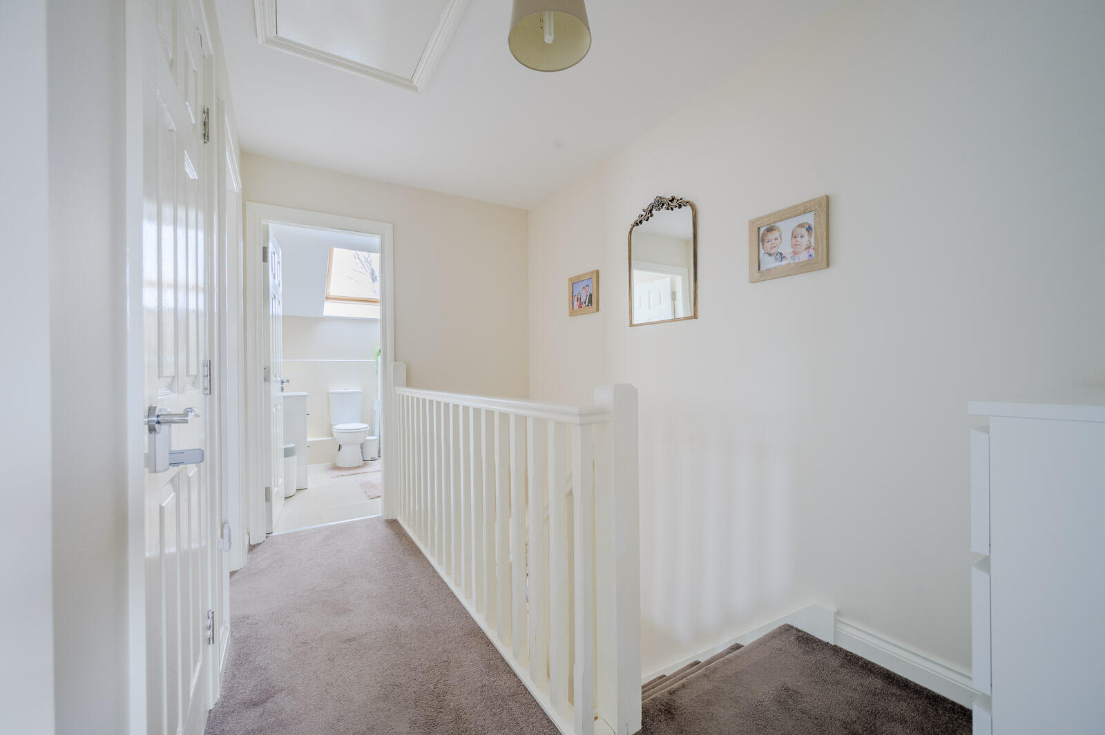 On the first floor, a spacious landing provides excellent storage and access to the roofspace. The principal bedroom benefits from dual aspect windows and a modern en-suite shower room. Two further well-proportioned bedrooms are served by a contemporary family bathroom.