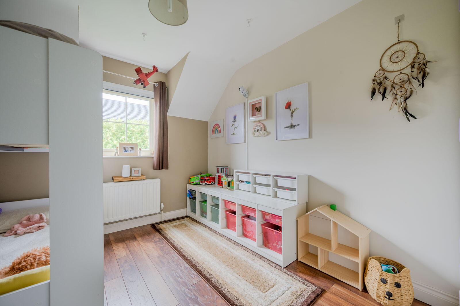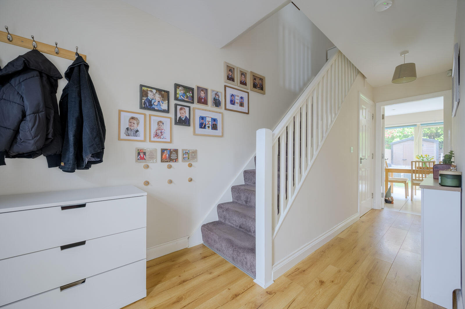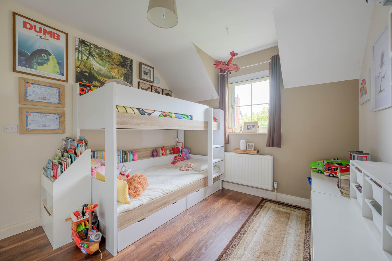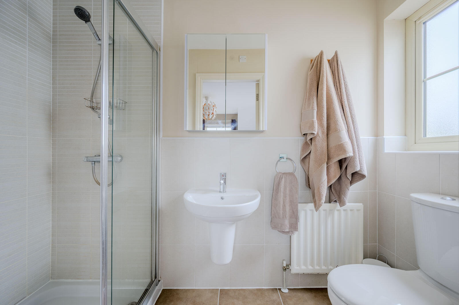 On the first floor, a spacious landing provides excellent storage and access to the roofspace. The principal bedroom benefits from dual aspect windows and a modern en-suite shower room. Two further well-proportioned bedrooms are served by a contemporary family bathroom.