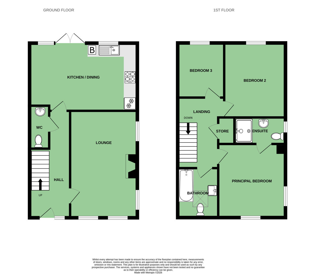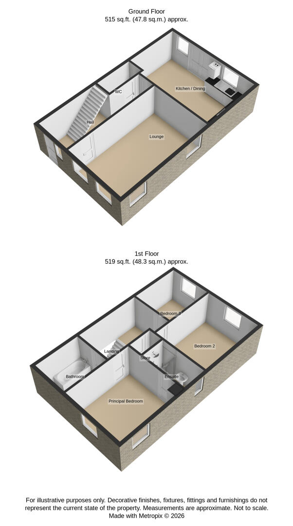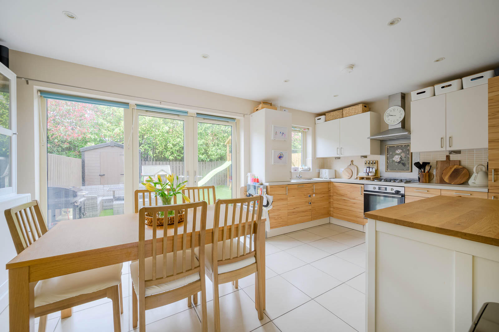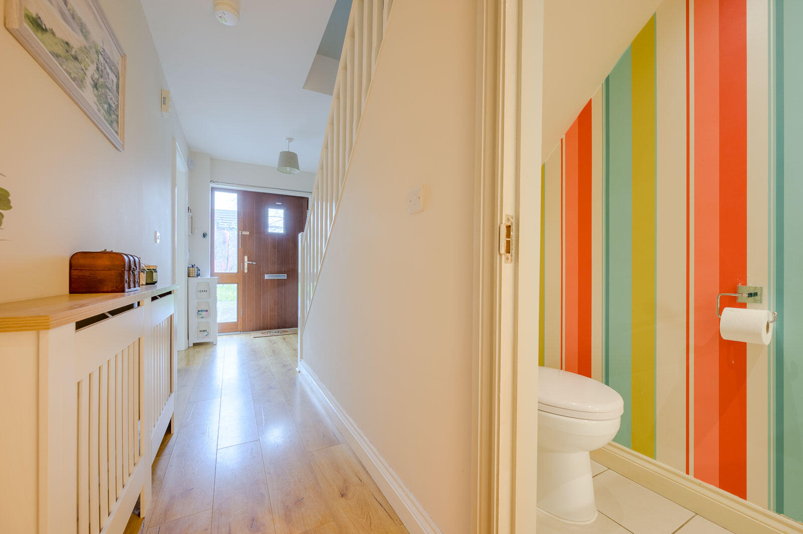 On the first floor, a spacious landing provides excellent storage and access to the roofspace. The principal bedroom benefits from dual aspect windows and a modern en-suite shower room. Two further well-proportioned bedrooms are served by a contemporary family bathroom.