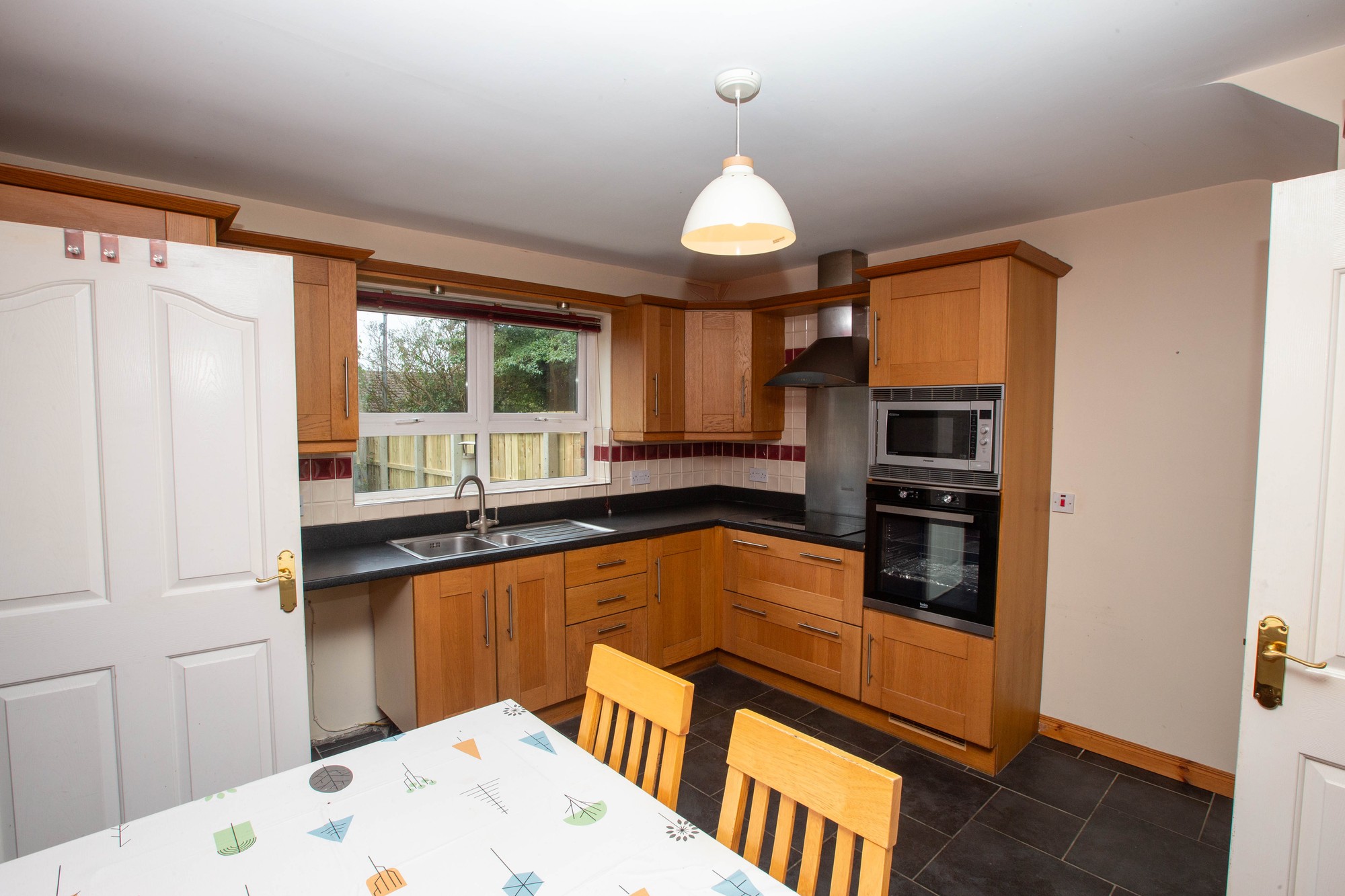 KITCHEN/DINING 12’5” x 11’9” (3.79m x 3.58m) - Range of high and low level fitted units, laminate worktops, stainless steel sink unit, integrated oven, microwave oven and ceramic hob, extractor canopy, plumbing for washing machine, cloaks cupboard, tiled floor.
