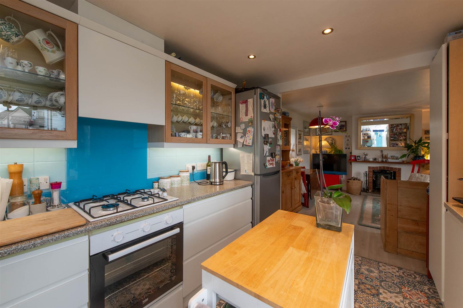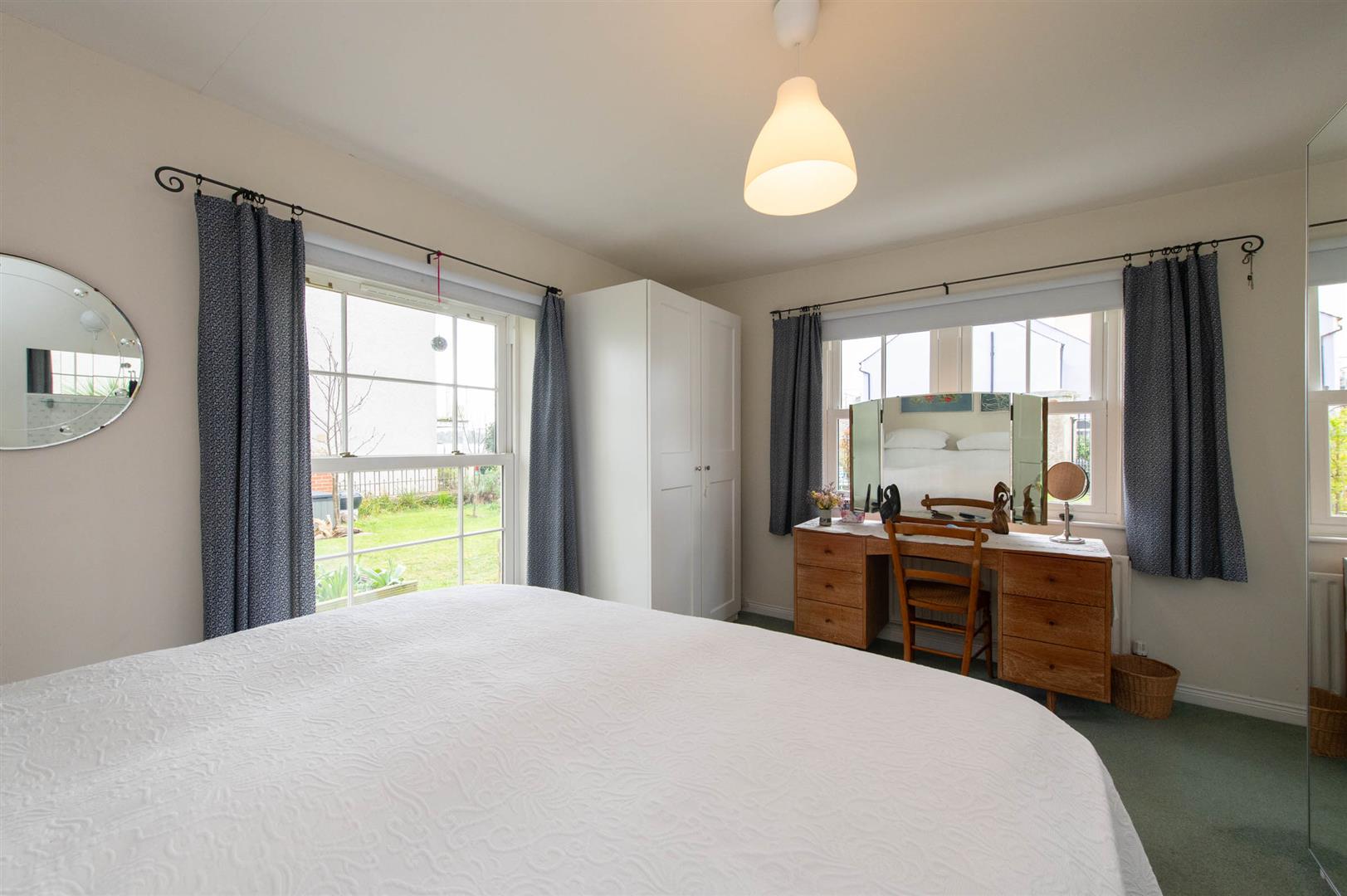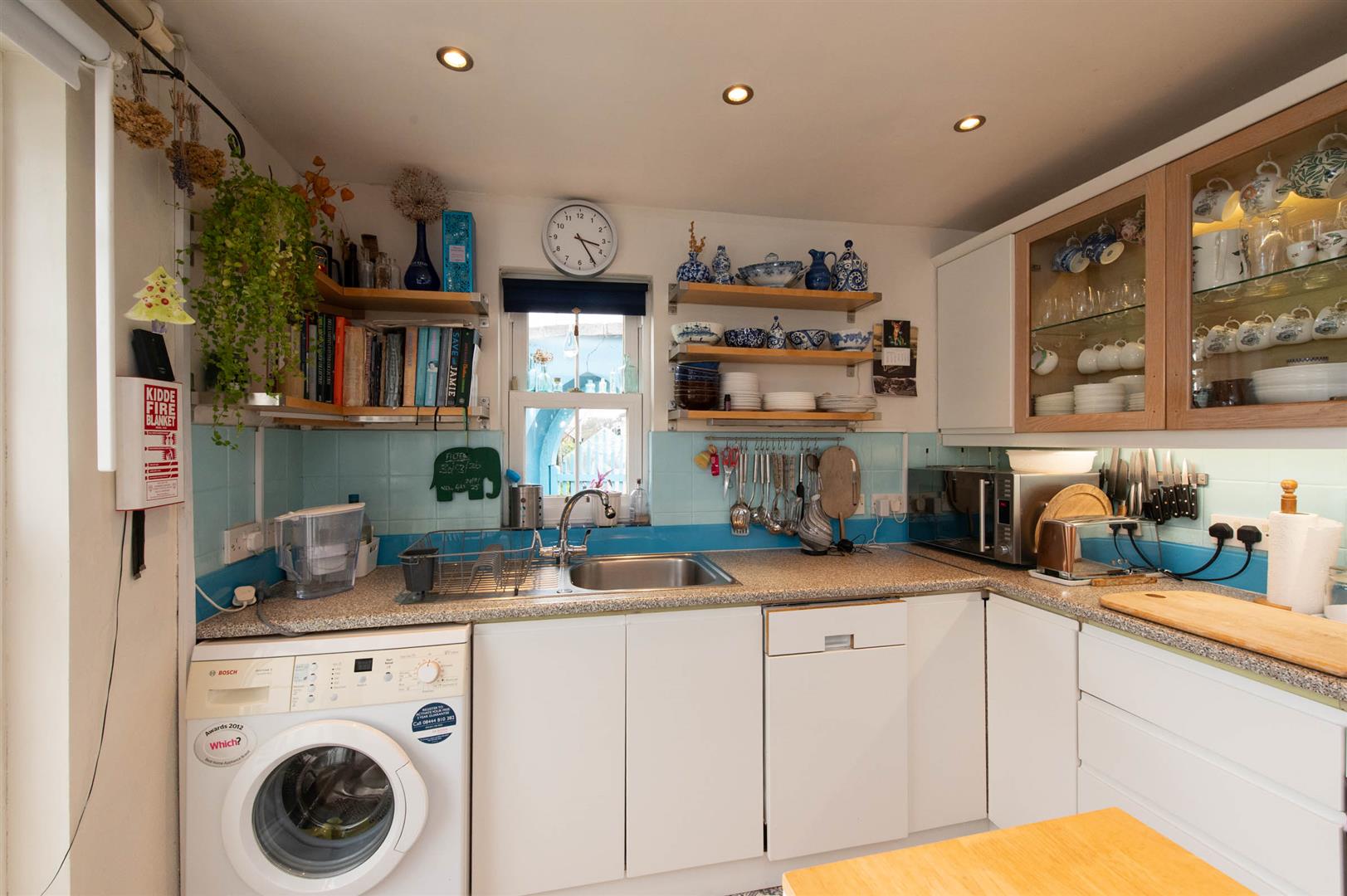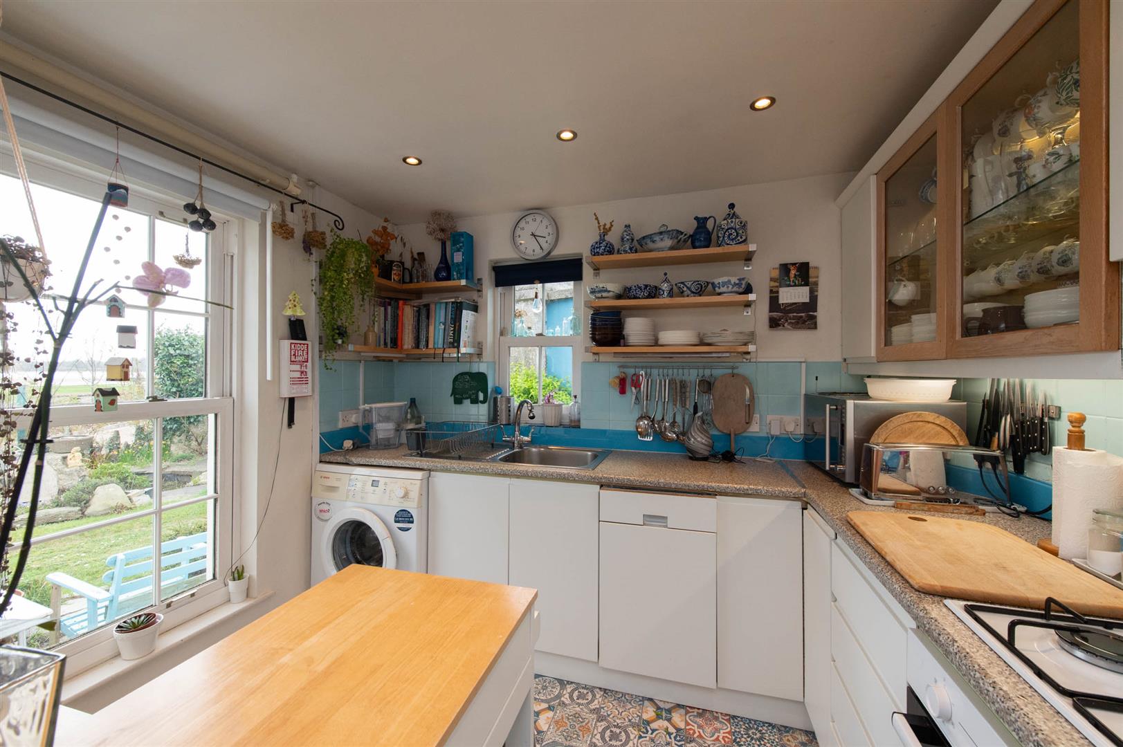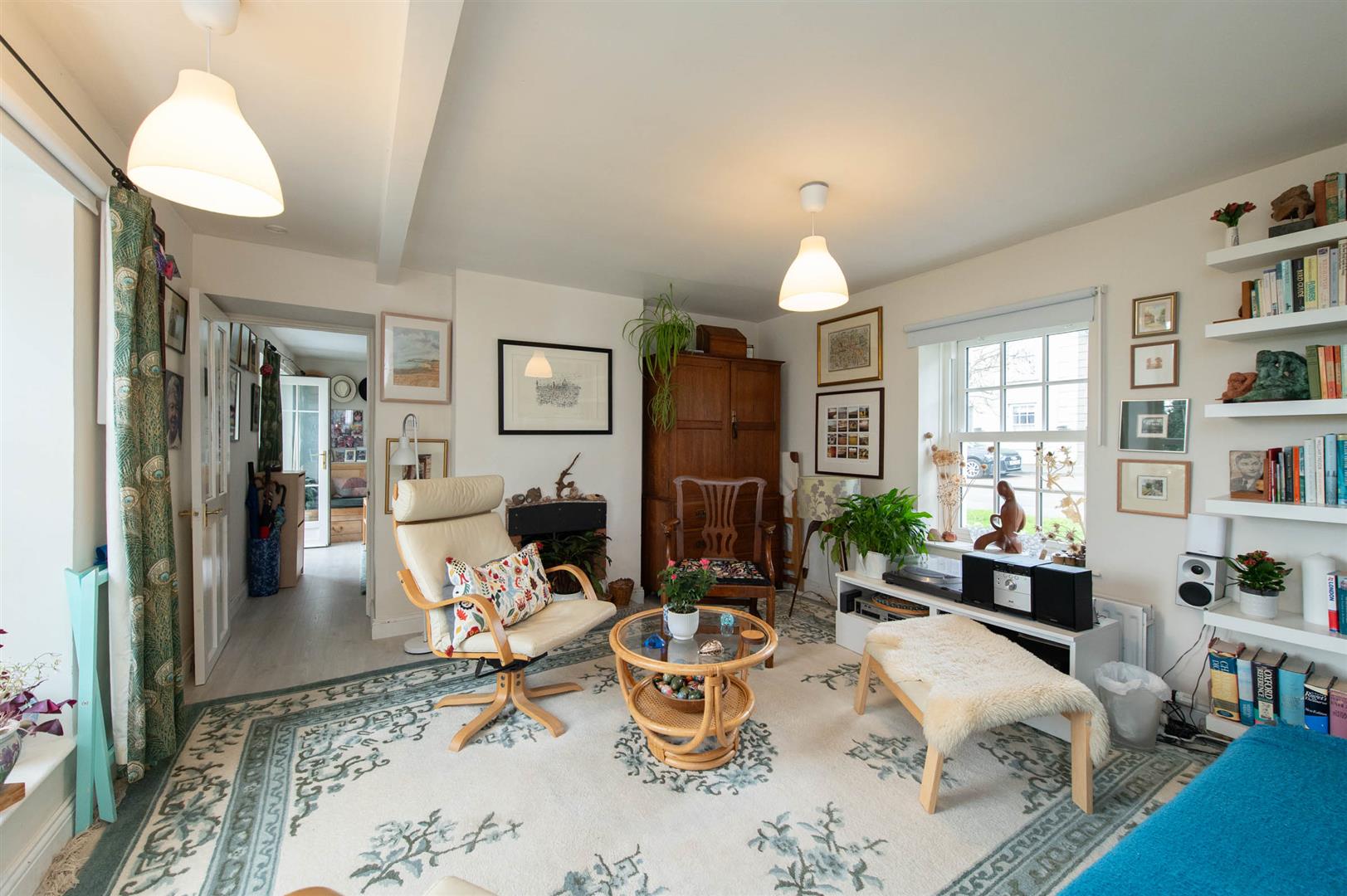 Accessed via the rear, this charming home opens into a bright, open-plan living and dining area, featuring a woodburning stove and a modern, open-concept kitchen. The kitchen overlooks the garden and is equipped with ample counter space, integrated appliances (gas hob, electric oven, dishwasher, and fridge freezer), and a dedicated recess for a washing machine. From the main living area is a versatile family room, boasting dual-aspect windows that fill the space with light. The property is completed by a bathroom and two comfortable bedrooms, with the master to include an ensuite shower room. Easily accessed by a fold-away ladder, the insulated loft space is finished with carpeting and paint, featuring eco-friendly lamb's wool throughout.