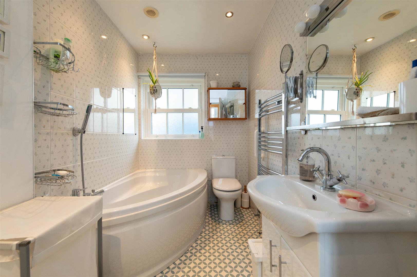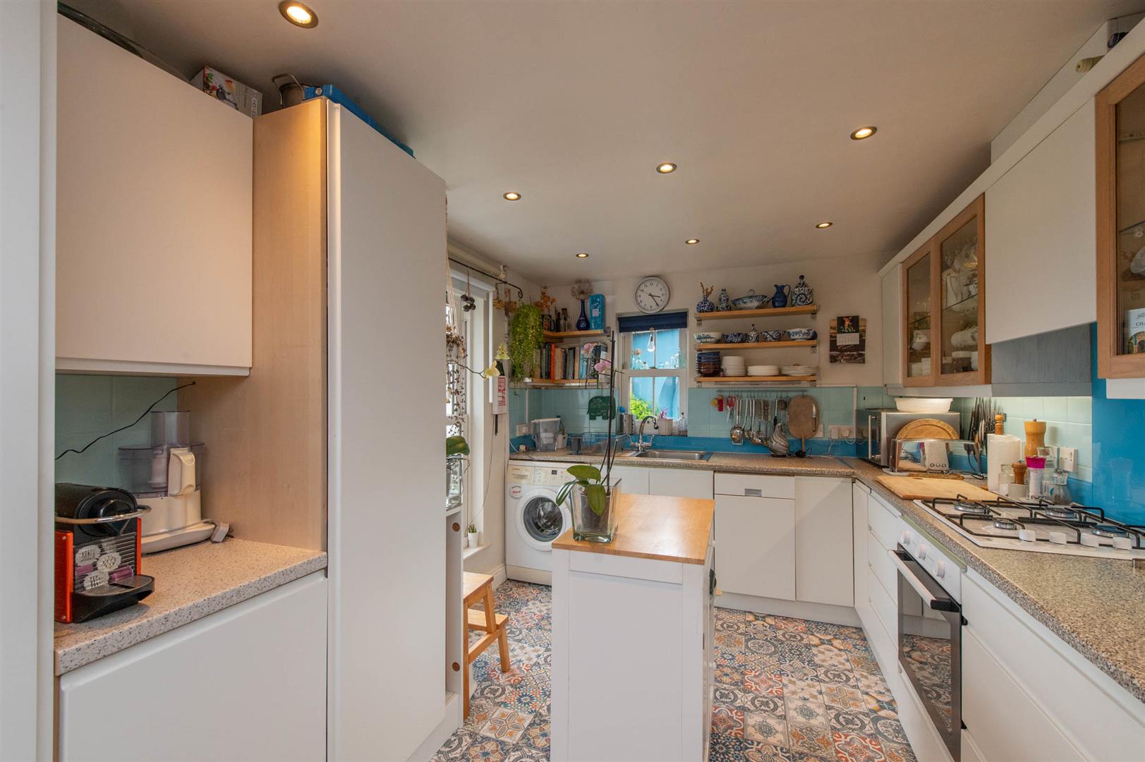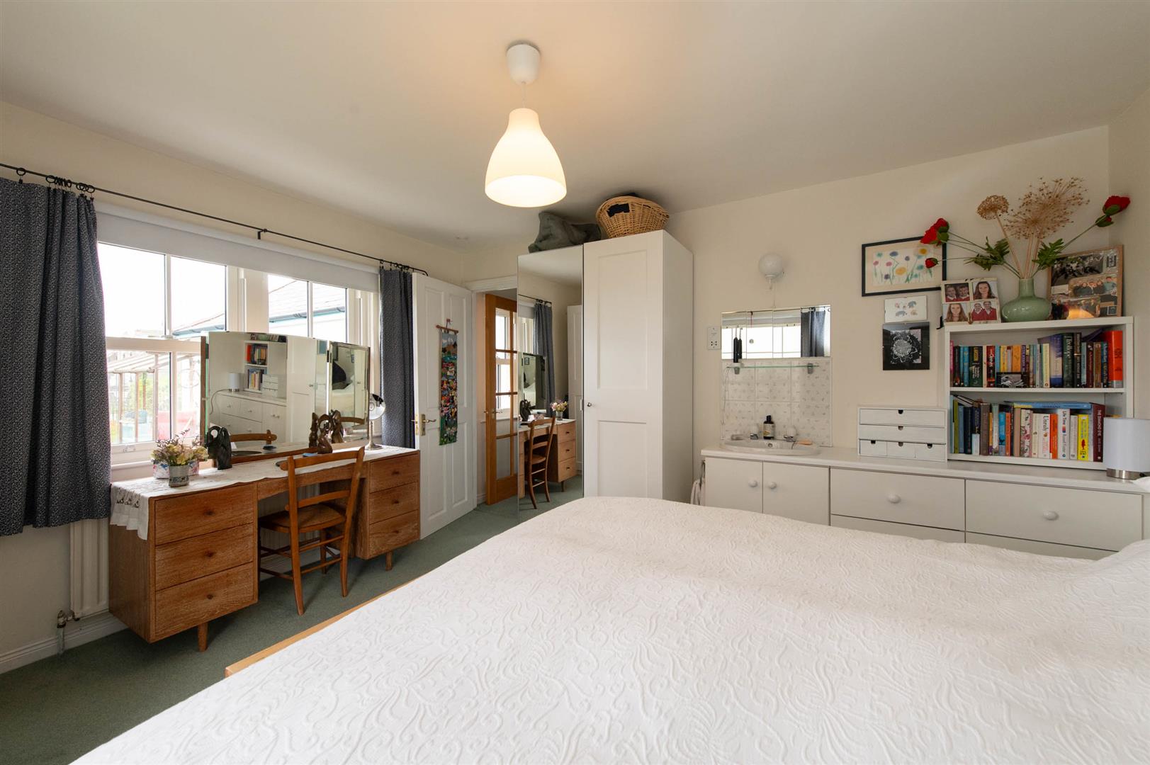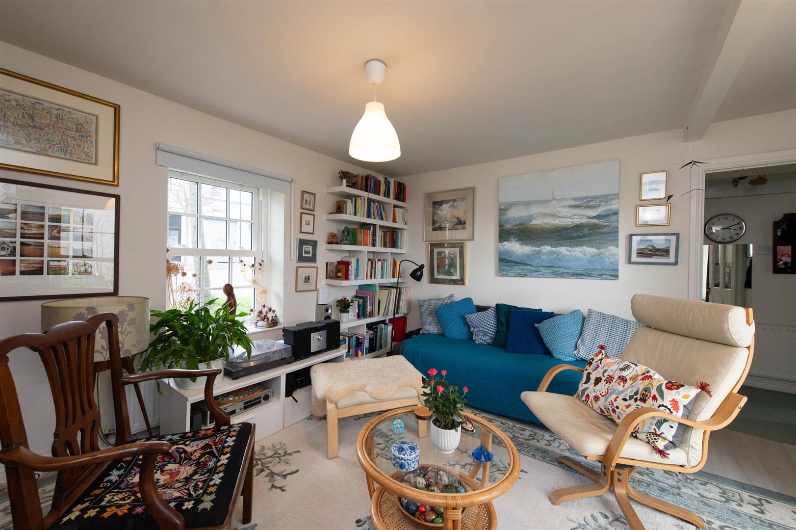 Accessed via the rear, this charming home opens into a bright, open-plan living and dining area, featuring a woodburning stove and a modern, open-concept kitchen. The kitchen overlooks the garden and is equipped with ample counter space, integrated appliances (gas hob, electric oven, dishwasher, and fridge freezer), and a dedicated recess for a washing machine. From the main living area is a versatile family room, boasting dual-aspect windows that fill the space with light. The property is completed by a bathroom and two comfortable bedrooms, with the master to include an ensuite shower room. Easily accessed by a fold-away ladder, the insulated loft space is finished with carpeting and paint, featuring eco-friendly lamb's wool throughout.