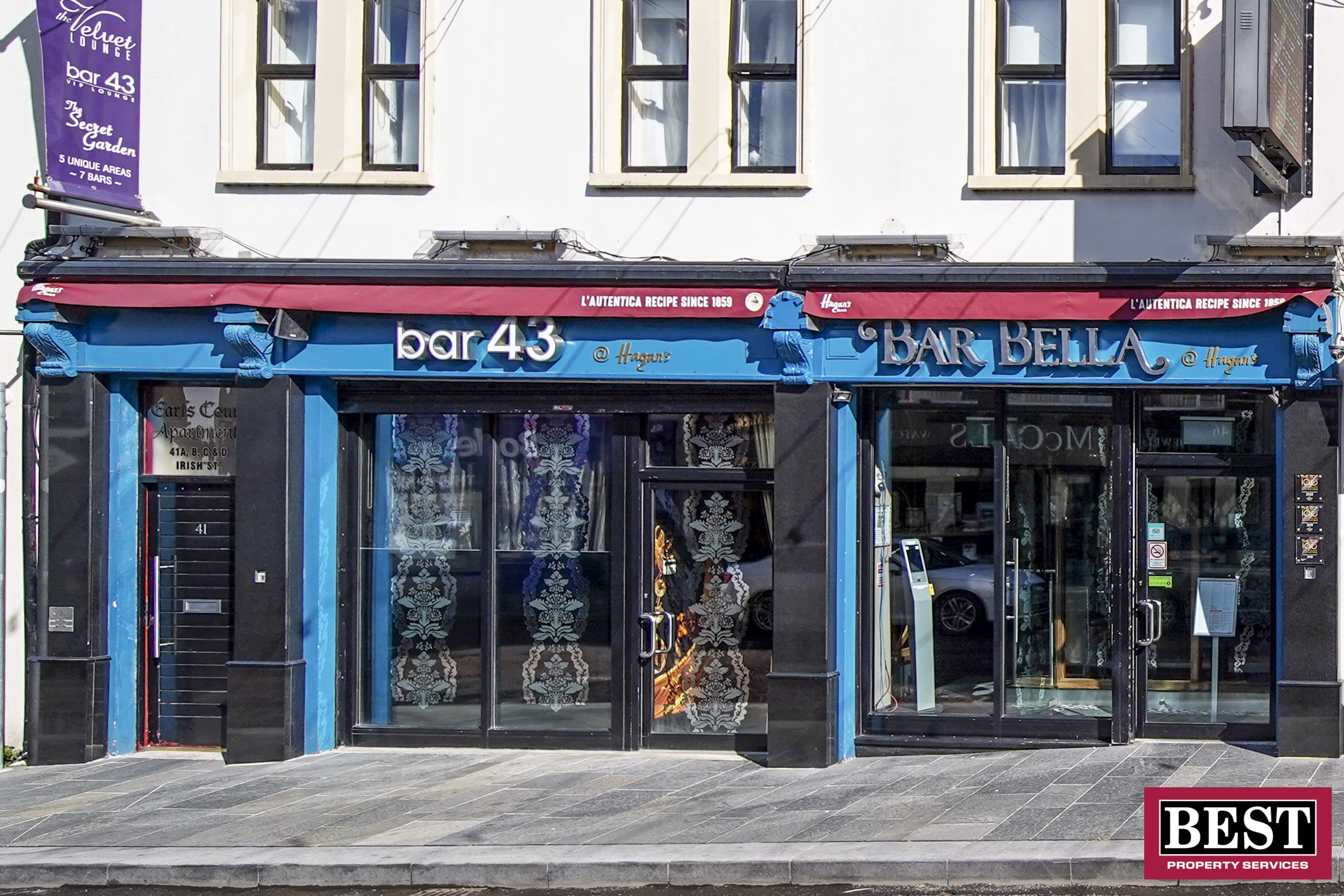 The sophisticated Public house and Entertainment venue, has won many hospitality awards and most recently the Top 100 Hospitality Business Award for three consecutive years running. Boasting five bar areas and seven serving stations, including Bar Bella, Bar 43 VIP Lounge, Velvet Lounge, Secret Garden & Havana Beer Garden, that provide genuine hospitality to its broad customer base of all ages, from all sections of the community.