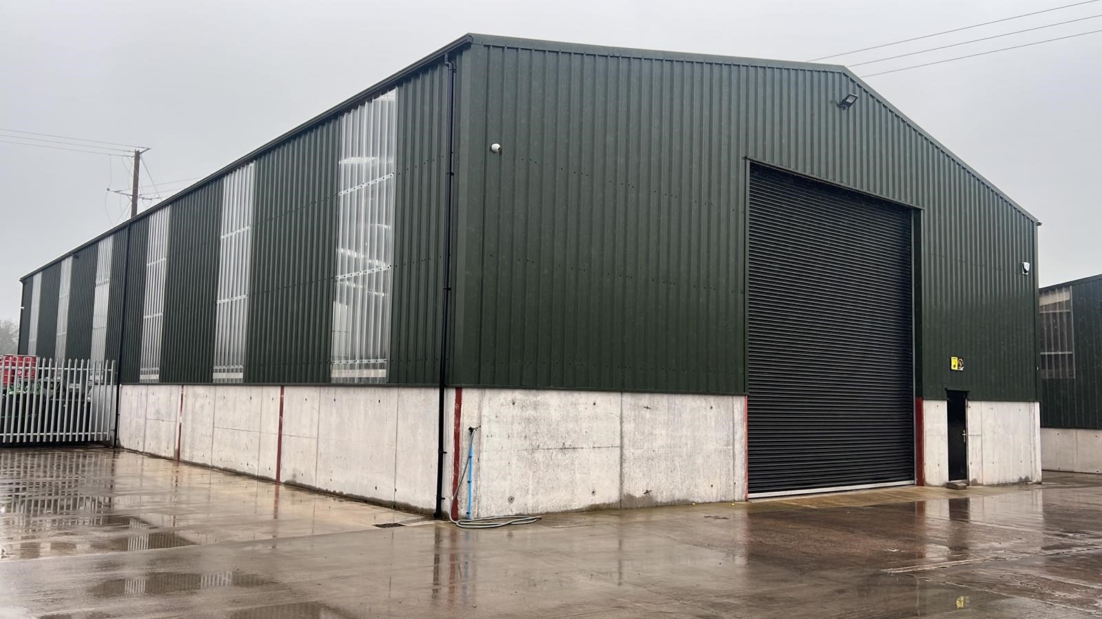 Features include 20ft eaves height, concrete yards, and a large roller shutter door for easy access.