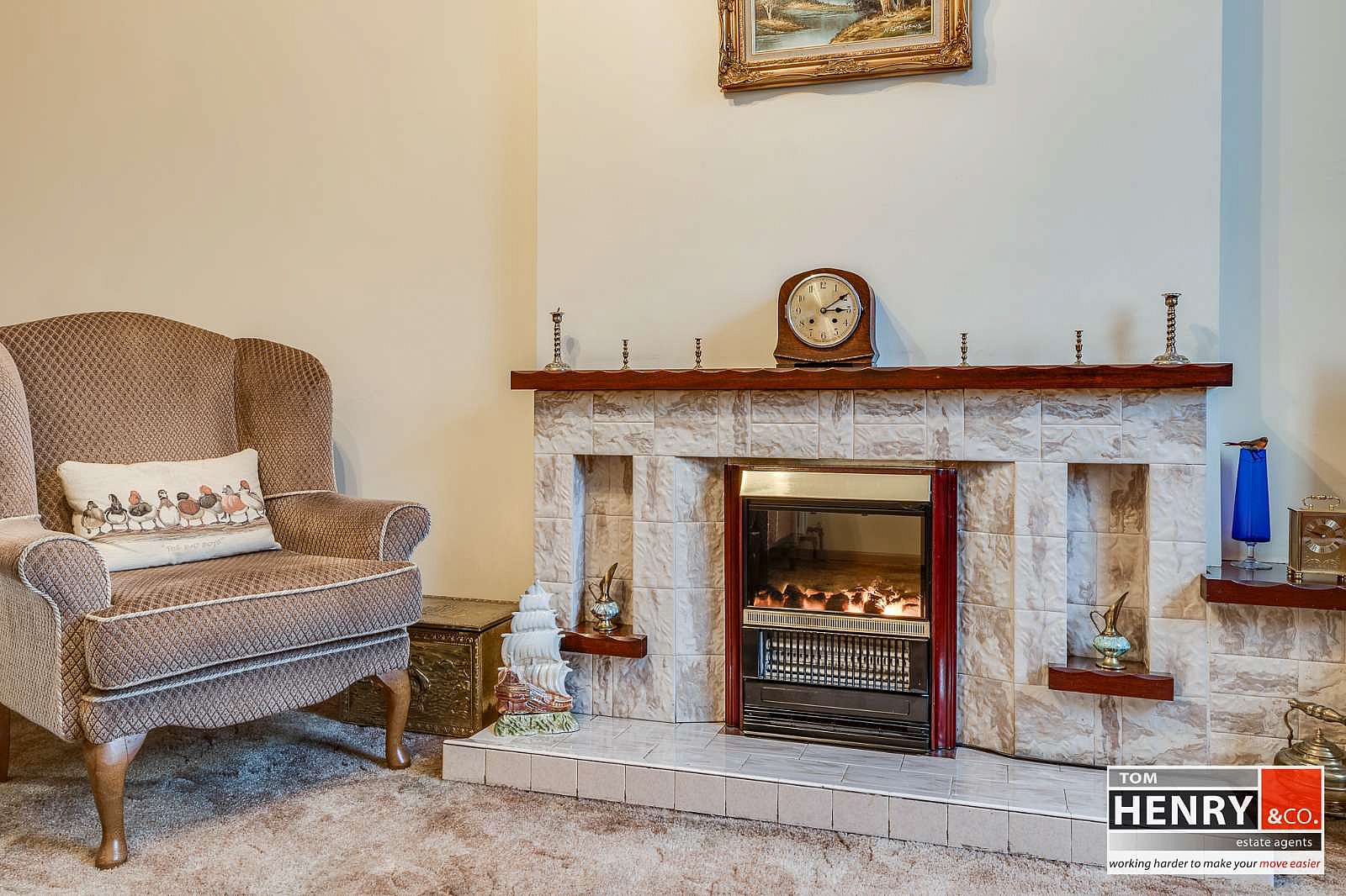 OPEN FIREPLACE WITH TILED SURROUND & HEARTH. T.V. REST WITH DISPLAY NICHES. CARPET TO FLOOR. CLOAK CUPBOARD: UNDERSTAIRS WITH ELECTRIC LIGHT & HANGING SPACE.