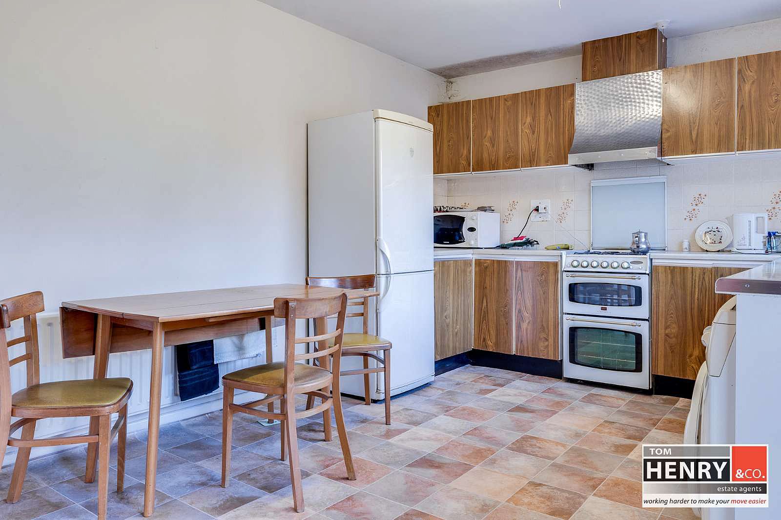 FITTED HIGH & LOW LEVEL UNITS. S.S. SINK & DRAINER WITH MIXER TAP FITTING. SPACE FOR COOKER X-FAN OVER IN S.S. CANOPY. SPACE FOR A.W.M. TILED BETWEEN UNITS. VINYL TO FLOOR. U.P.V.C EXTERNAL DOOR WITH GLAZED PANEL.
