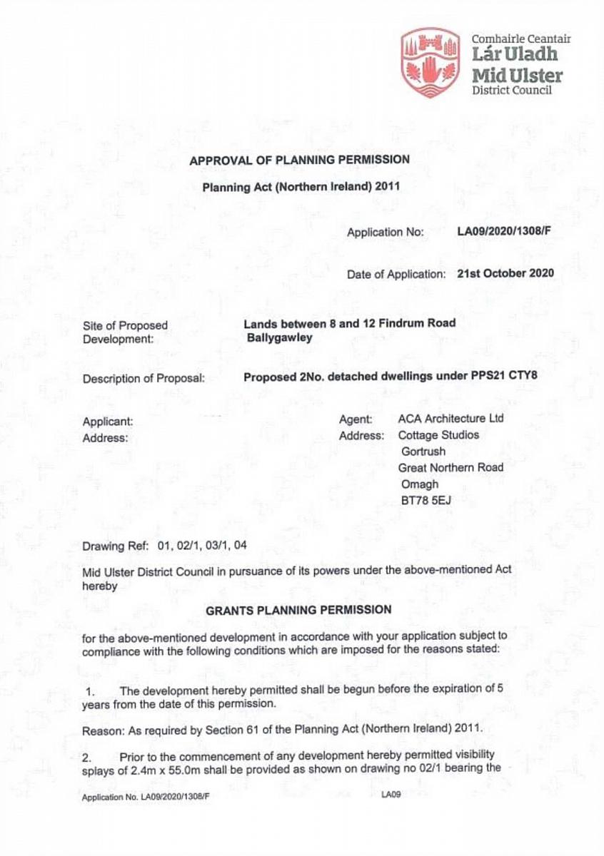 The associated planning application numbers can be viewed on Mid Ulster Council Planning Portal with the reference LA09/2020/1308/F