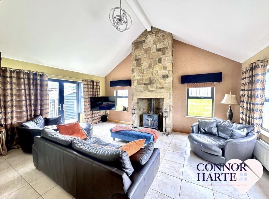 Wood burning stove with stone feature. Television and power points. Vaulted ceiling. P.V.C. French doors leading to rear garden.