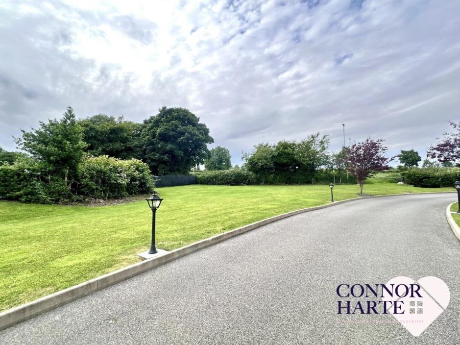Double pillared entrance pillars leading to private residence. Sweeping tarmaced treelined driveway with extensive garden laid out in lawn. Driveway lighting. Stoned and barked kids play area. Outside water tap. Tarmac drive and parking area to side and rear of property. Gardens to front laid out in lawn with privacy hedging and fencing. Garden to rear stoned and wood bark children's play area. Patio area with wood frame gazebo and tiled roof. Power points. Flagged area.