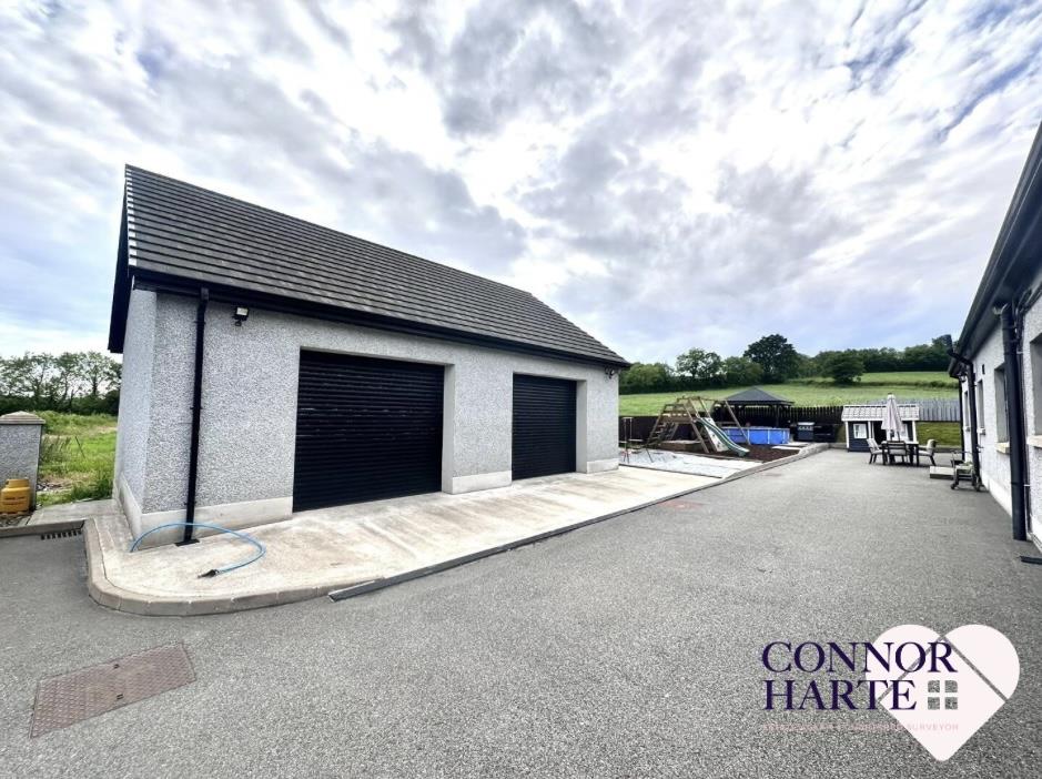 Detached Double Garage 9.41m x 6.90m U.P.V.C. roller garage doors (electric roller doors to be confirmed). Power points.