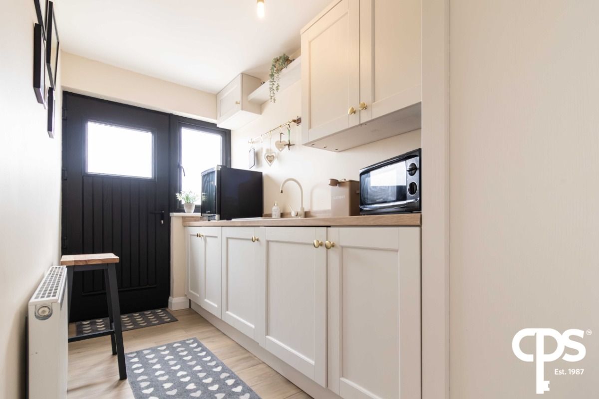 The sun room features the same porcelain wood effect tiles that run seamlessly from the kitchen. All new windows and doors have been full fitted and double glazed for efficiency. The room allows for access to the rear garden through double patio doors. Sunroom is to the rear of the property which is south facing allowing for ample lighting.