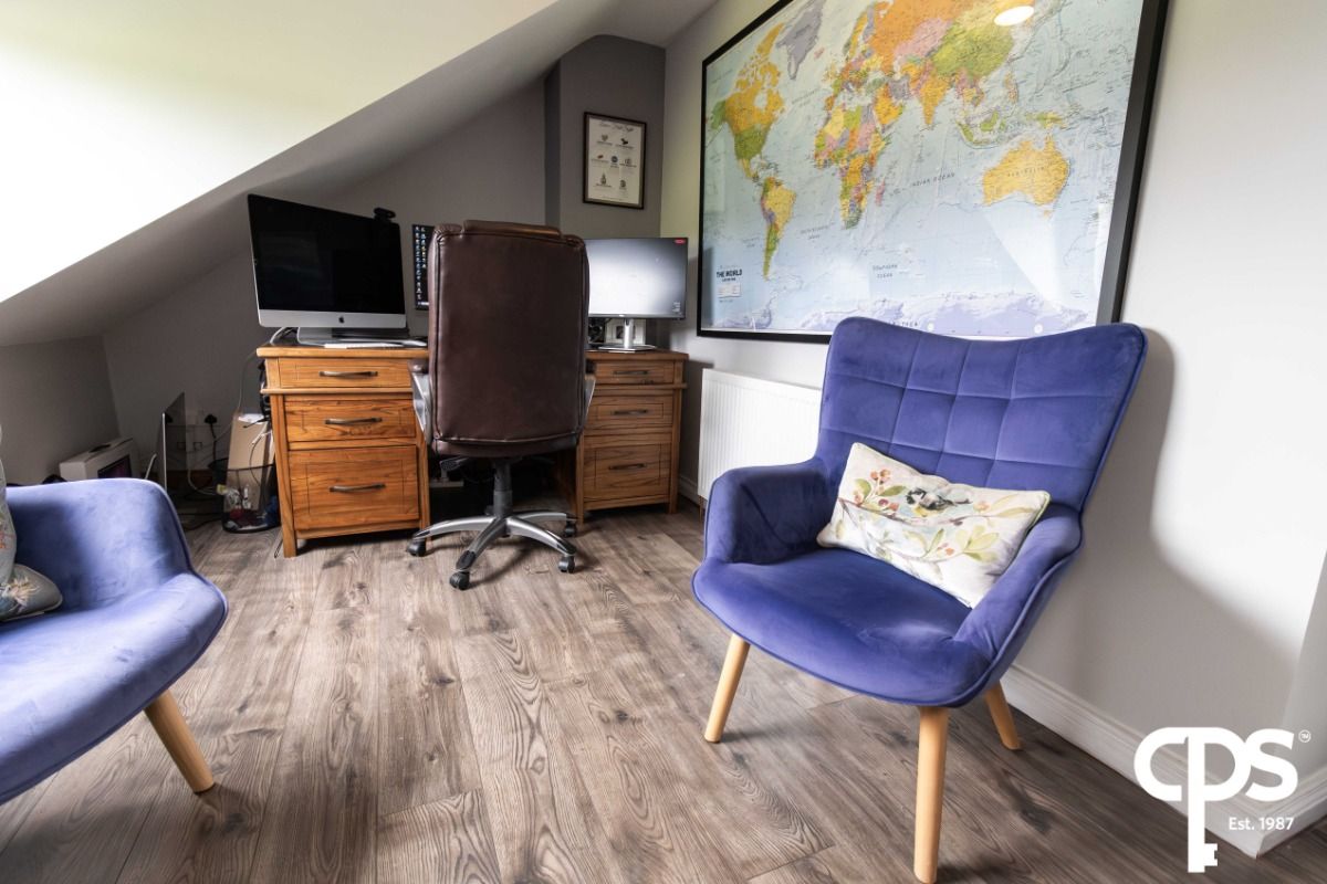 This room is currently being used as a home office that could double up as an extra bedroom. This large room provides extra storage and features a single panel radiator.