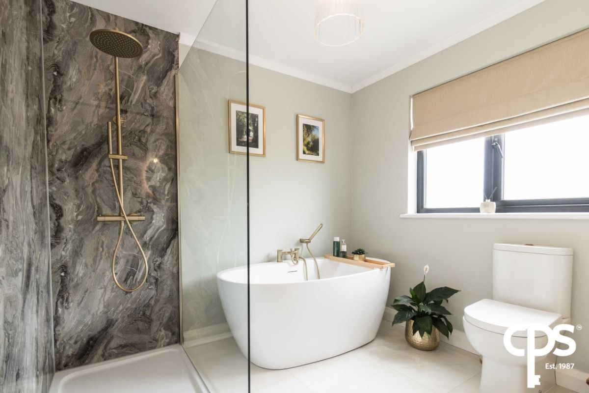 This three-piece suite ensuite comprises of a WC, floating vanity unit with wash hand basin and a shower. The room benefits from tiled floors with the shower area finished in shower panelling that complements the room perfectly. Room also benefits from a wall mounted towel radiator.