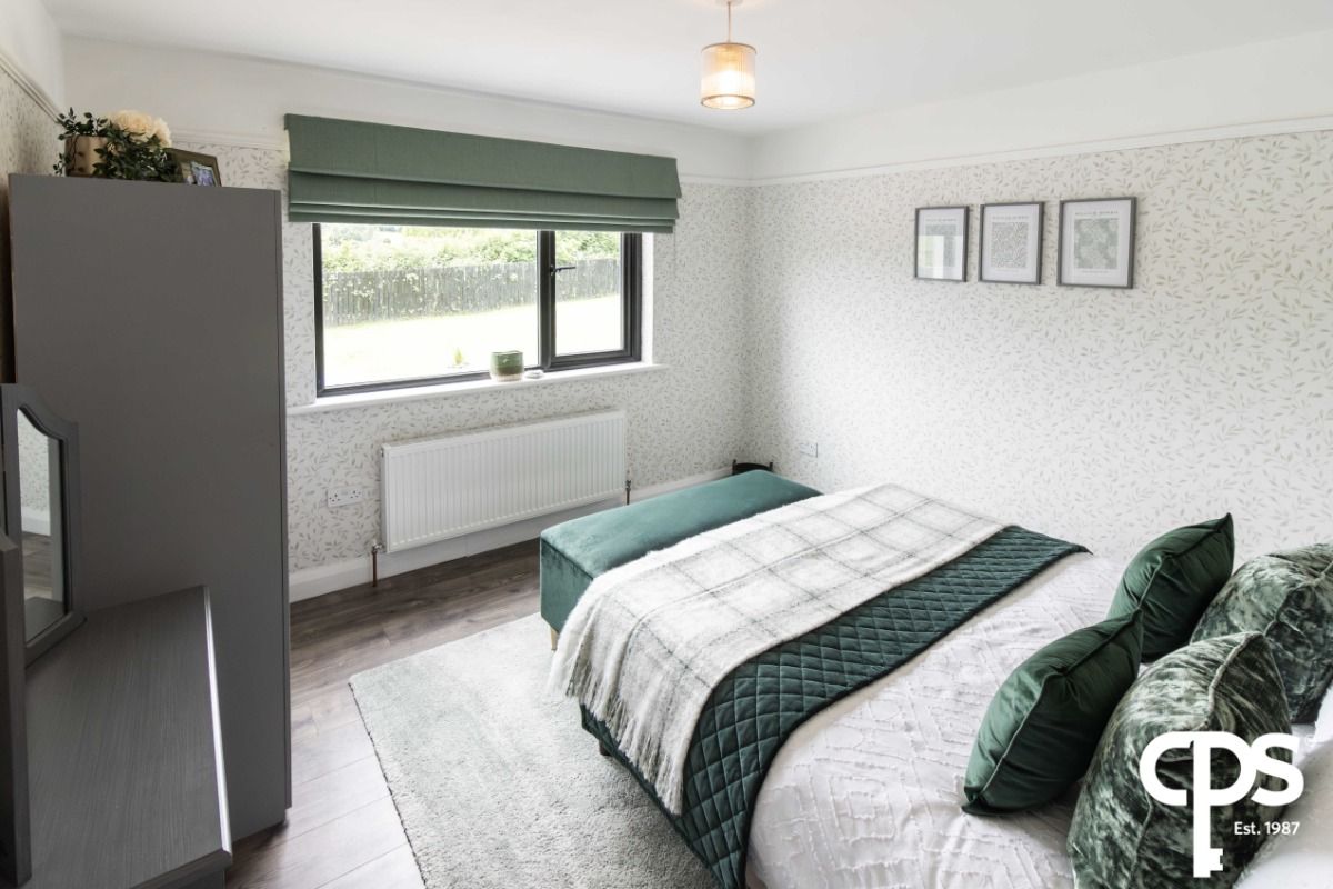 This large double room features wood effect laminate flooring and is spacious due to the large window. The room benefits from a conveniently located TV point and electrical points throughout. The room also features a large double panel radiator.