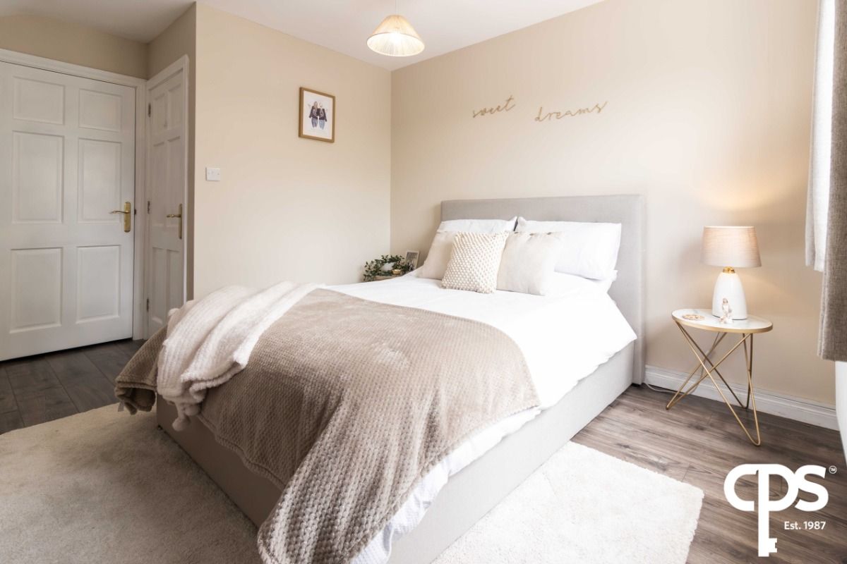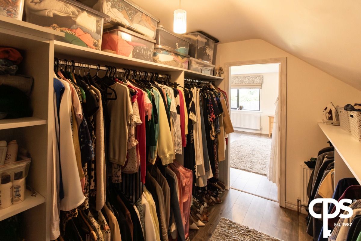 This large double master bedroom is bright and spacious and allows for access to an additional walk-in wardrobe area (3.6m x 1.9m). This extensive walk-in wardrobe is perfect for all your clothing storage needs. The room boasts nice countryside views and features both electrical points throughout and a TV point. Room has been fitted with custom fitted blinds as well as wood effect laminate flooring which complements the room beautifully. Bedroom also benefits from a separate toilet and wash hand basin (1.9m x 0.8m).