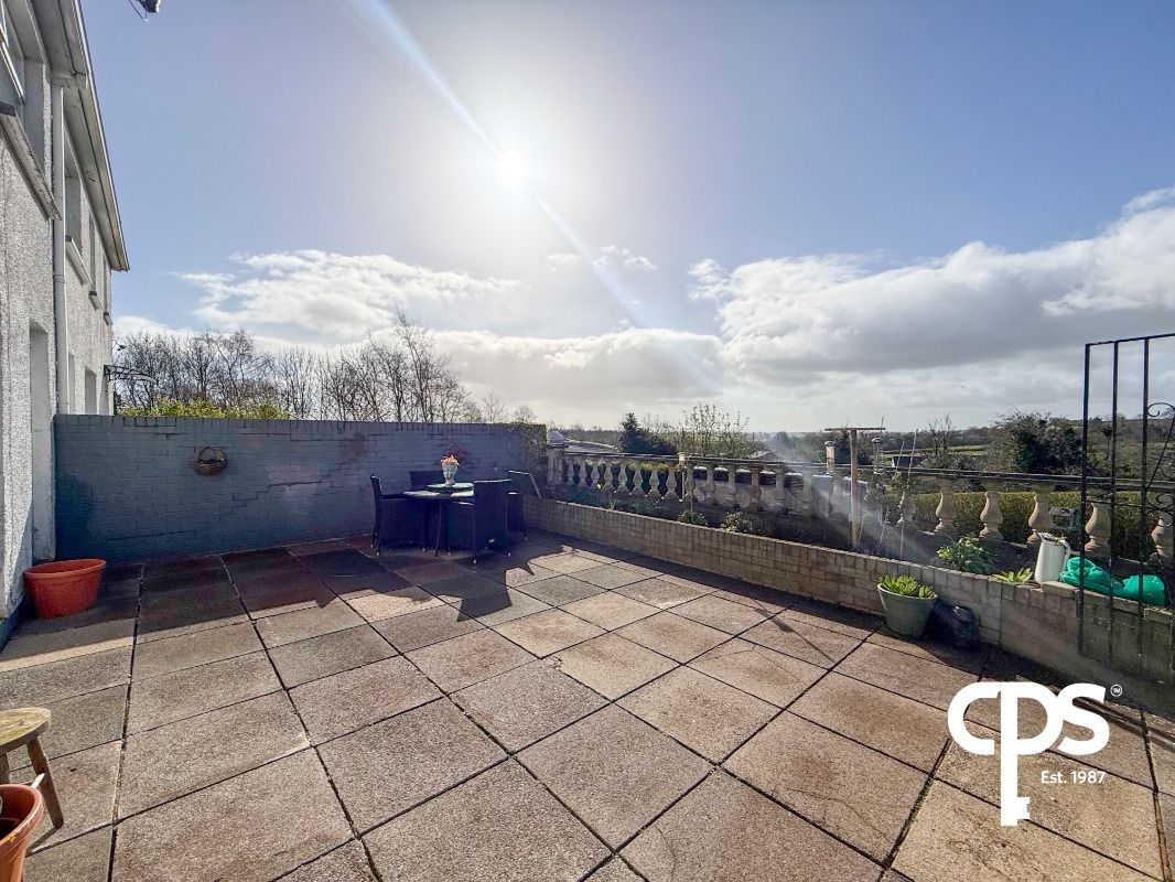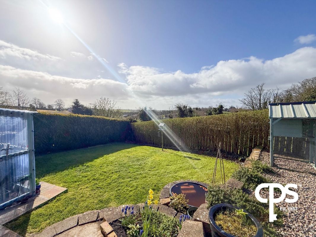 Patio area leading to an extensive lawn, enjoying peaceful countryside views—ideal for outdoor living and relaxation.