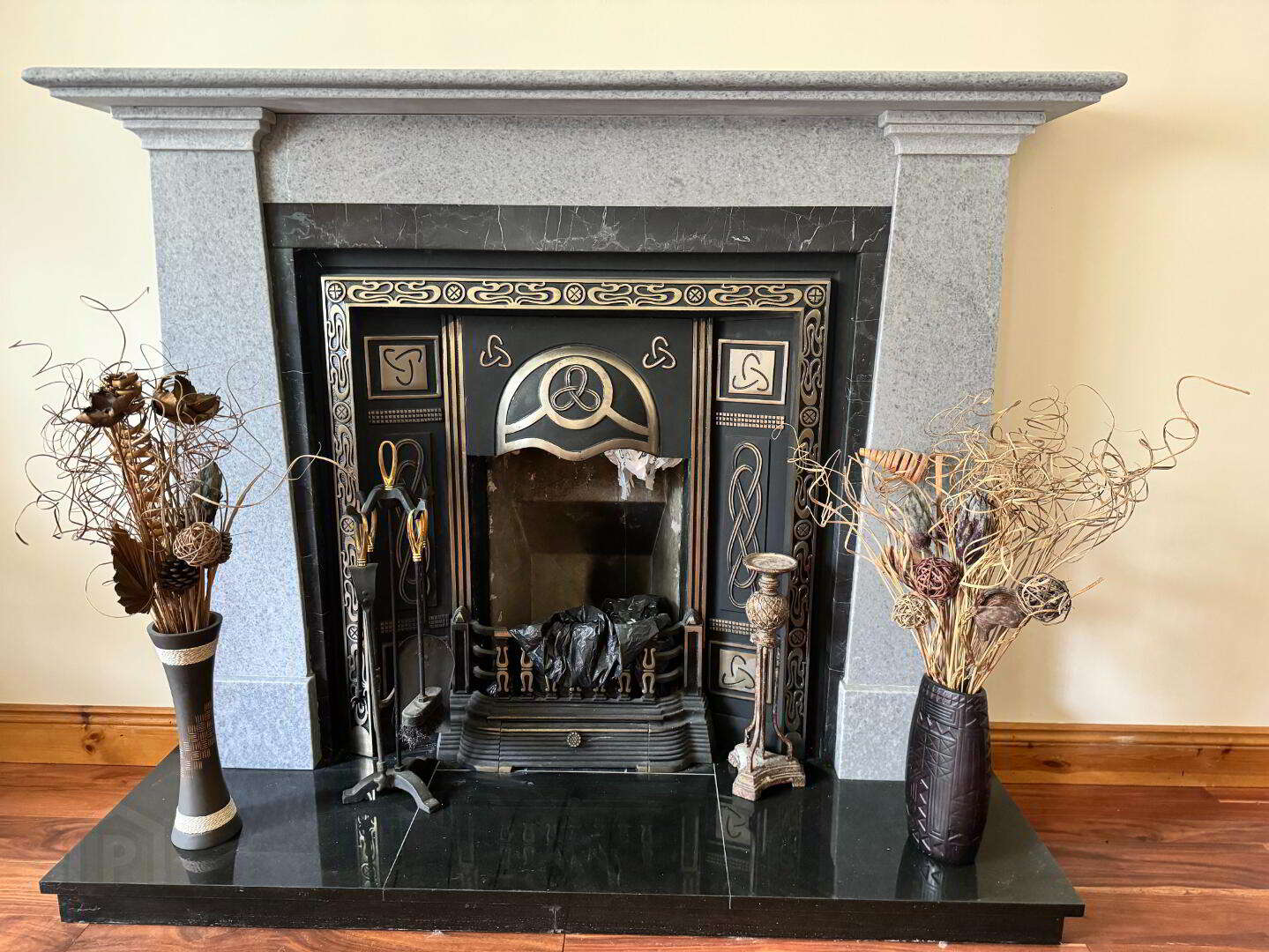 Lounge: 11’11 x 16’2 (at widest point) Feature open fire with tiled inset and tiled hearth. Hard wood floor, TV point, vertical blinds.