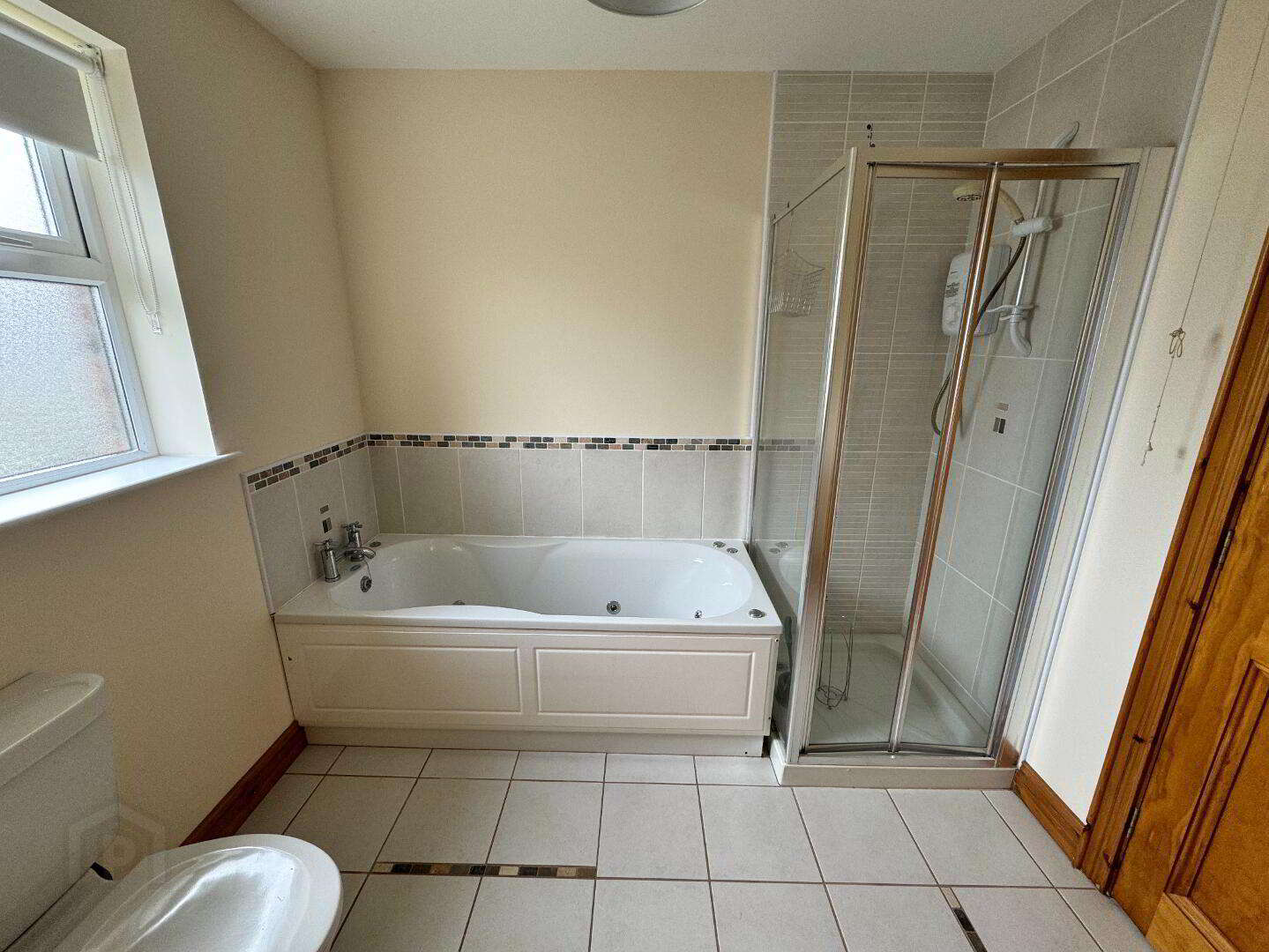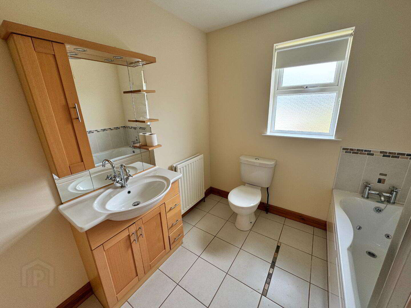 Main Bathroom: 8’03 x 7’08 Suite includes low flush wc, wash hand basin with vanity unit, bath and electric shower with fully tiled shower cubicle. Tiled floor.