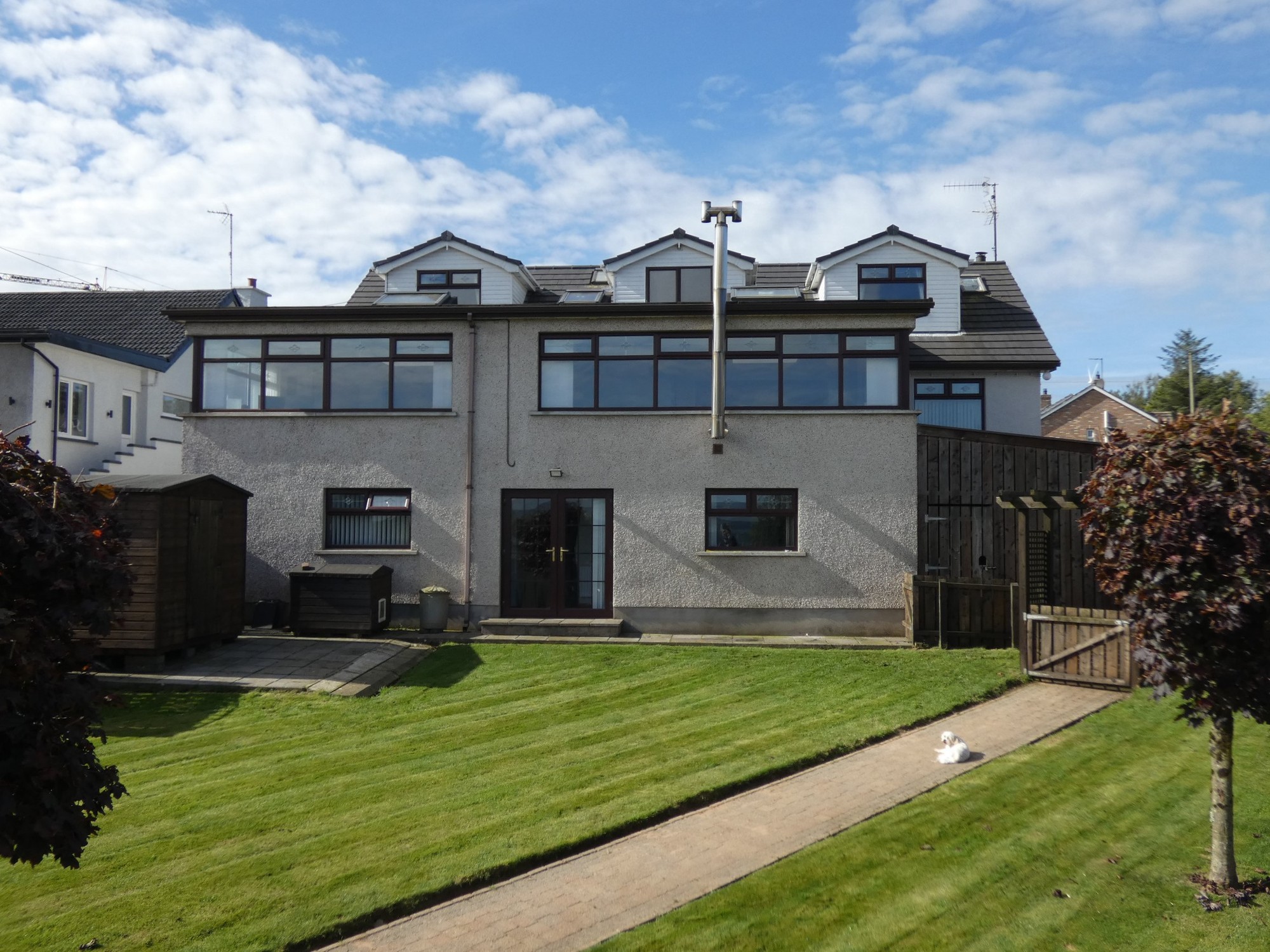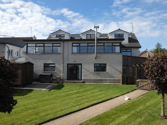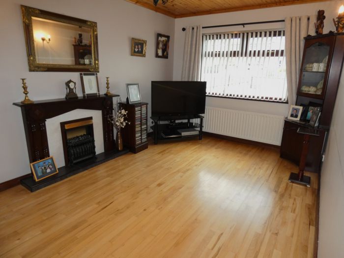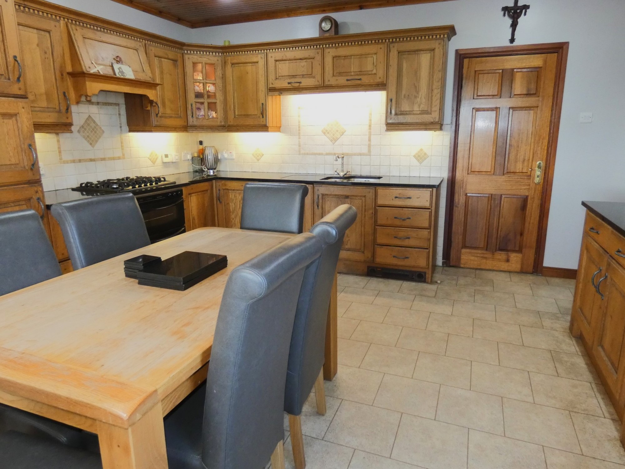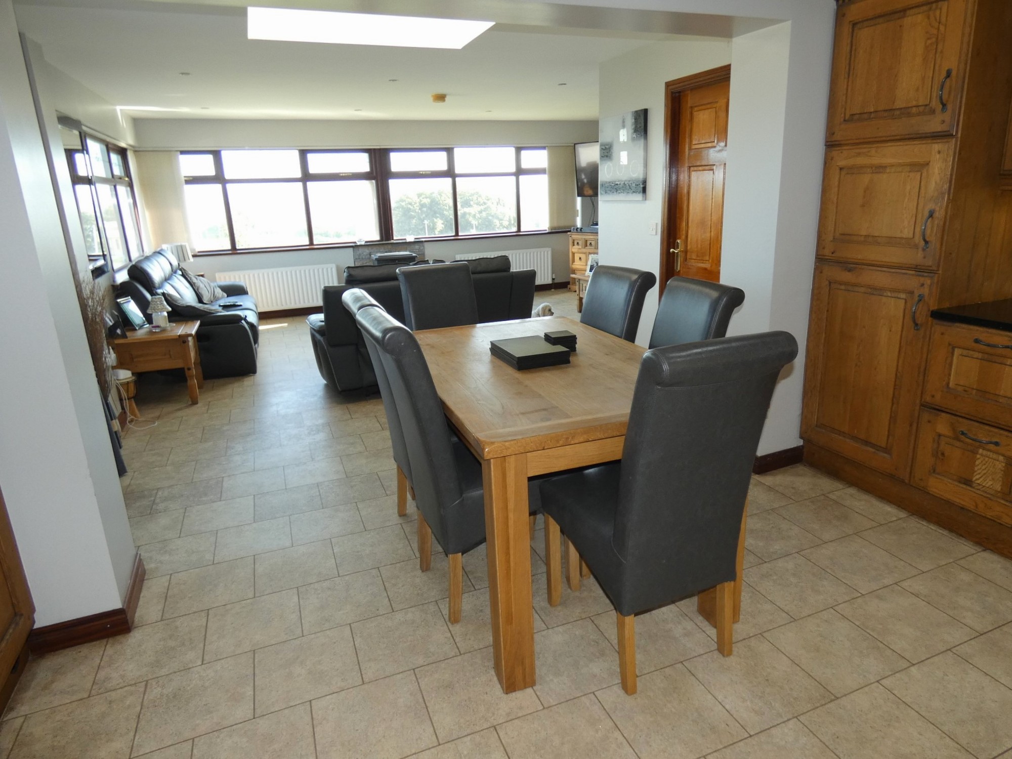 Maple wooden floor, open tread staircase to first floor, hot press with shelving, pedestrian door to Annexe, mahogany effect upvc front door with side panels.