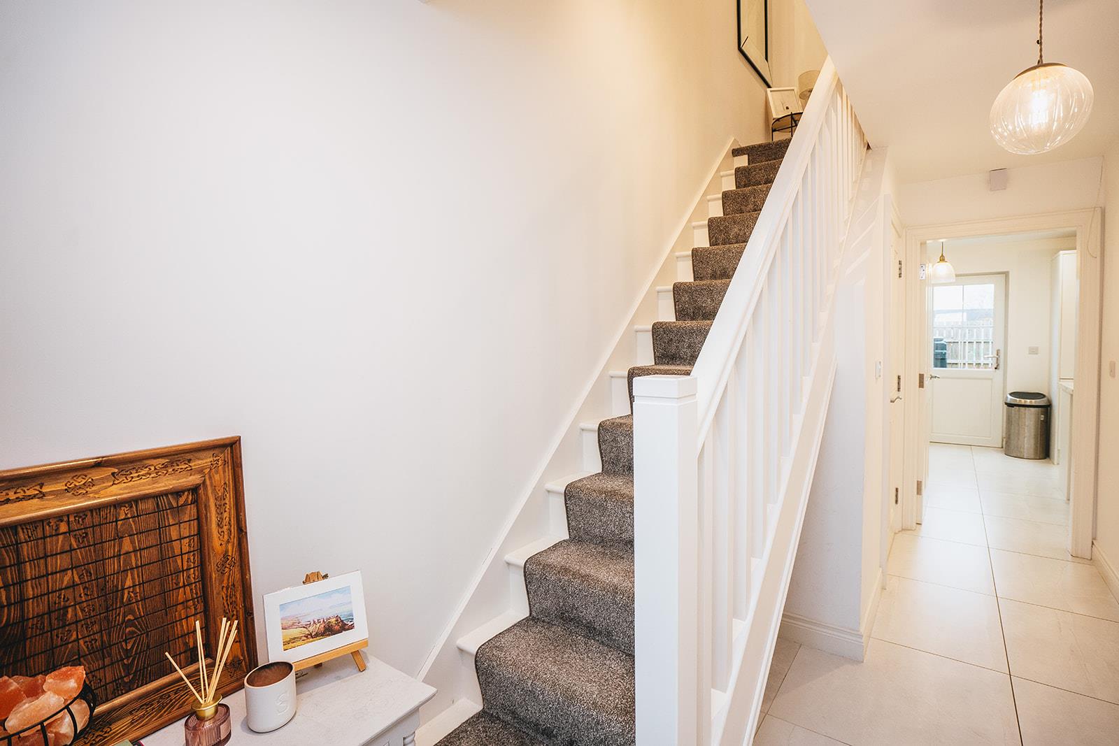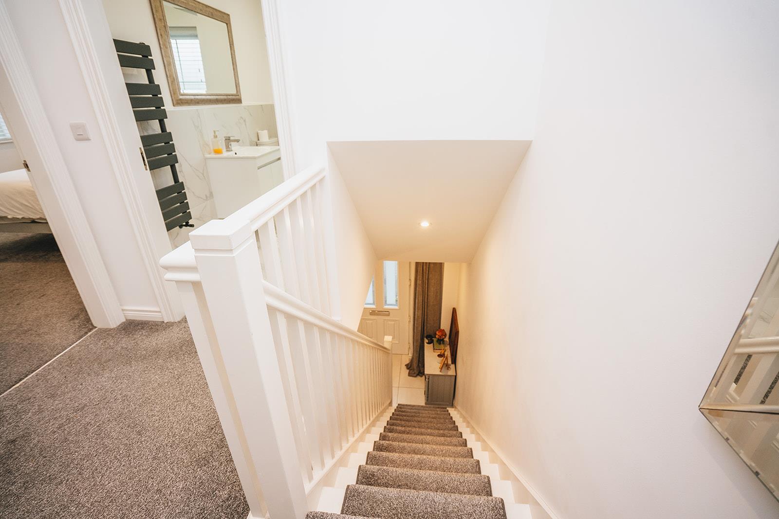 Spacious landing space with low voltage spotlighting, ventilation system and access to roof space.