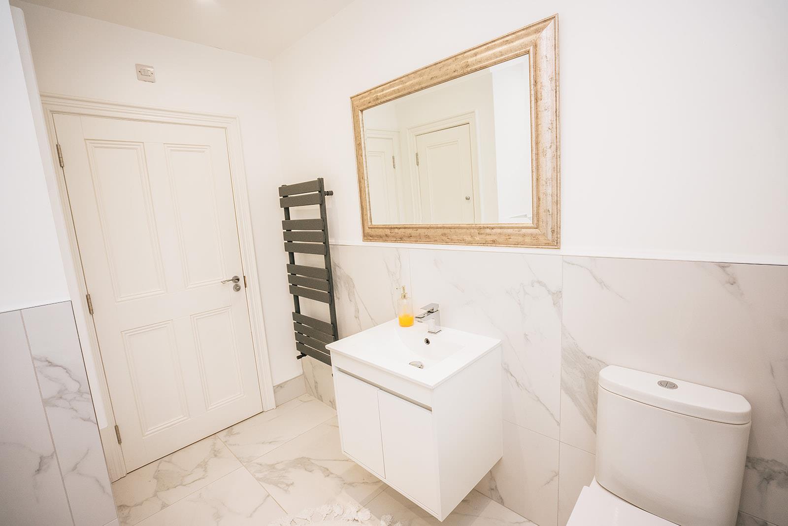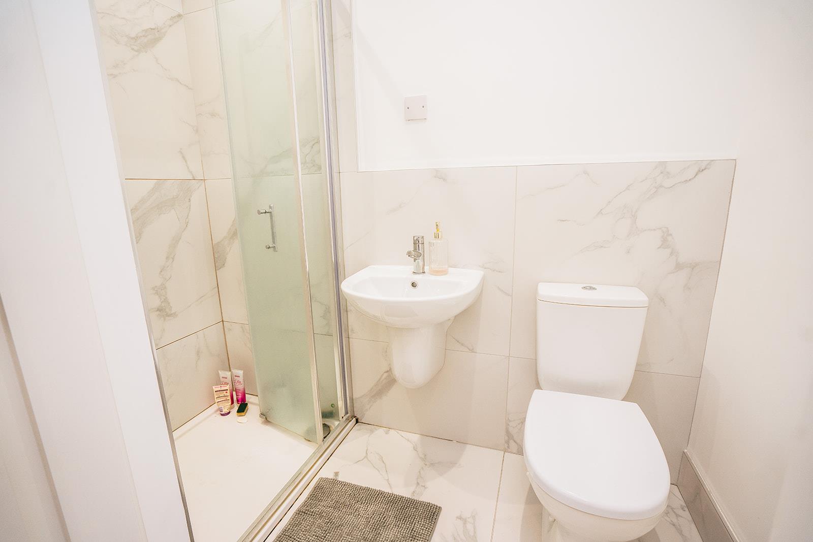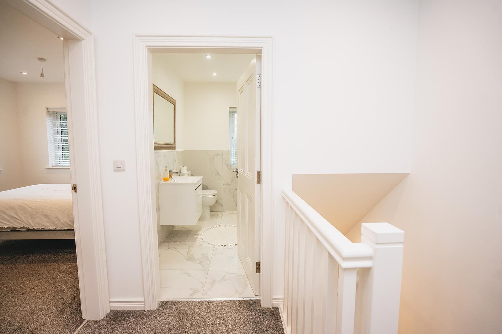 A double room with dual aspect windows. En-Suite 2.2m x 1.1m comprising wall hung wash hand basin with mixer tap, low flush wc, low voltage spotlighting, part tiled walls, tiled floor and tiled shower cubicle with rainfall shower head, telephone hand shower and thermostatic wall controls.