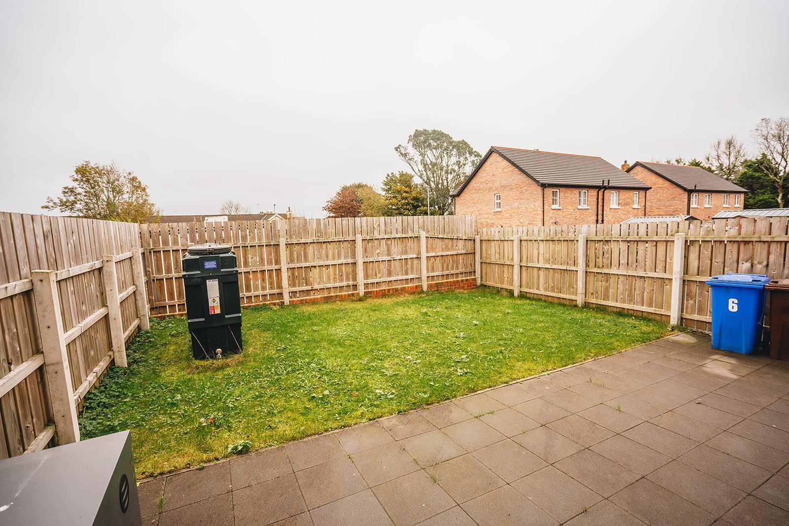 This house enjoys a corner site with tarmac parking for two cars. A paved ramp leads to the front door with outside light. A tarmac pedestrian path leads to the rear garden which is fence enclosed and is mainly laid in lawn with a paved patio area. The oil fired burner and oil storage tank are also located in the rear garden.
