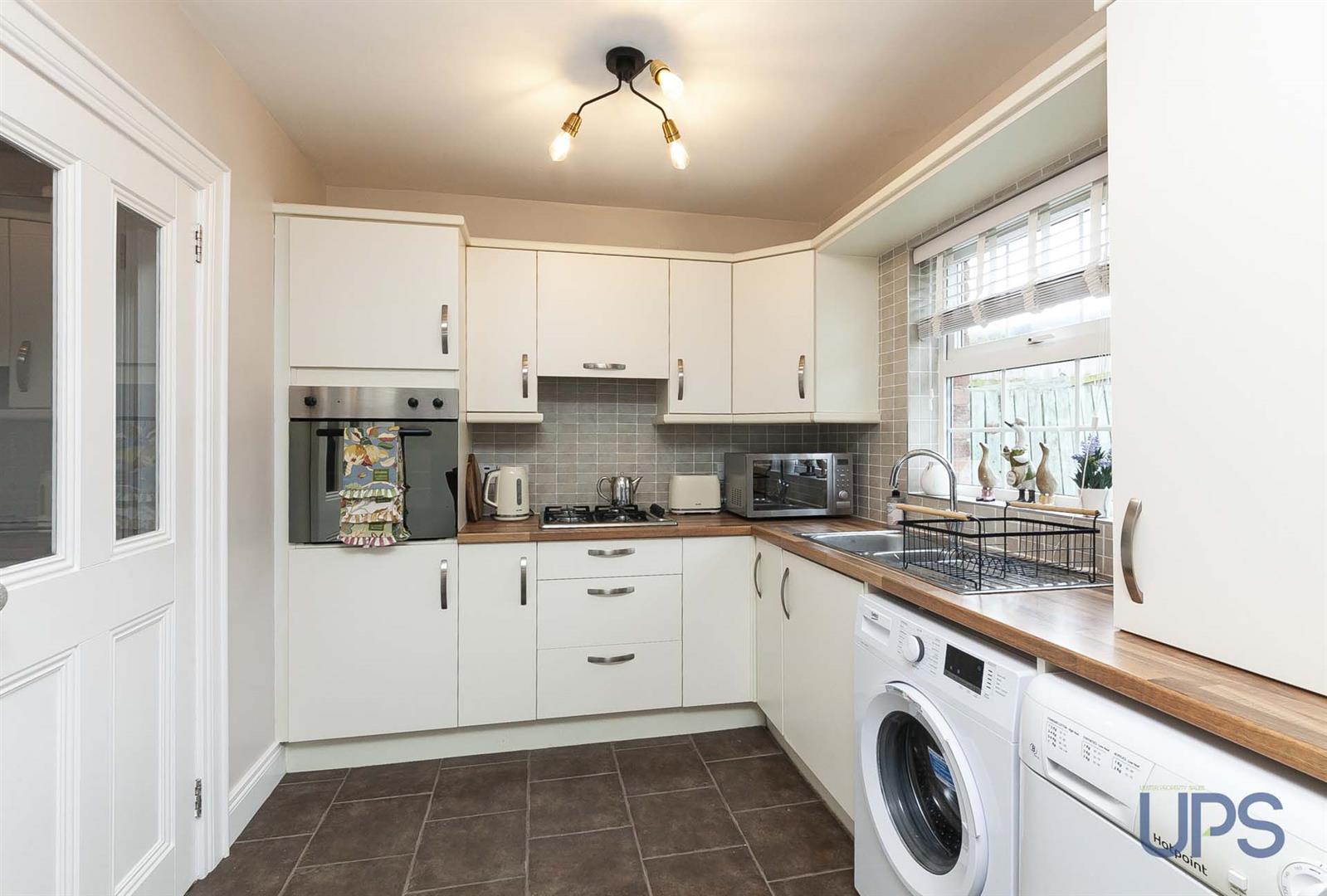 Range of high and low level units, single drainer stainless steel 1 1/2 bowl sink unit, built-in 4 ring hob, extractor fan, built-in oven, beautiful partially tiled walls, integrated fridge and freezer, plumbed for washing machine, tiled floor, open plan to sizeable dining space, Upvc double glazed double doors to enclosed garden.