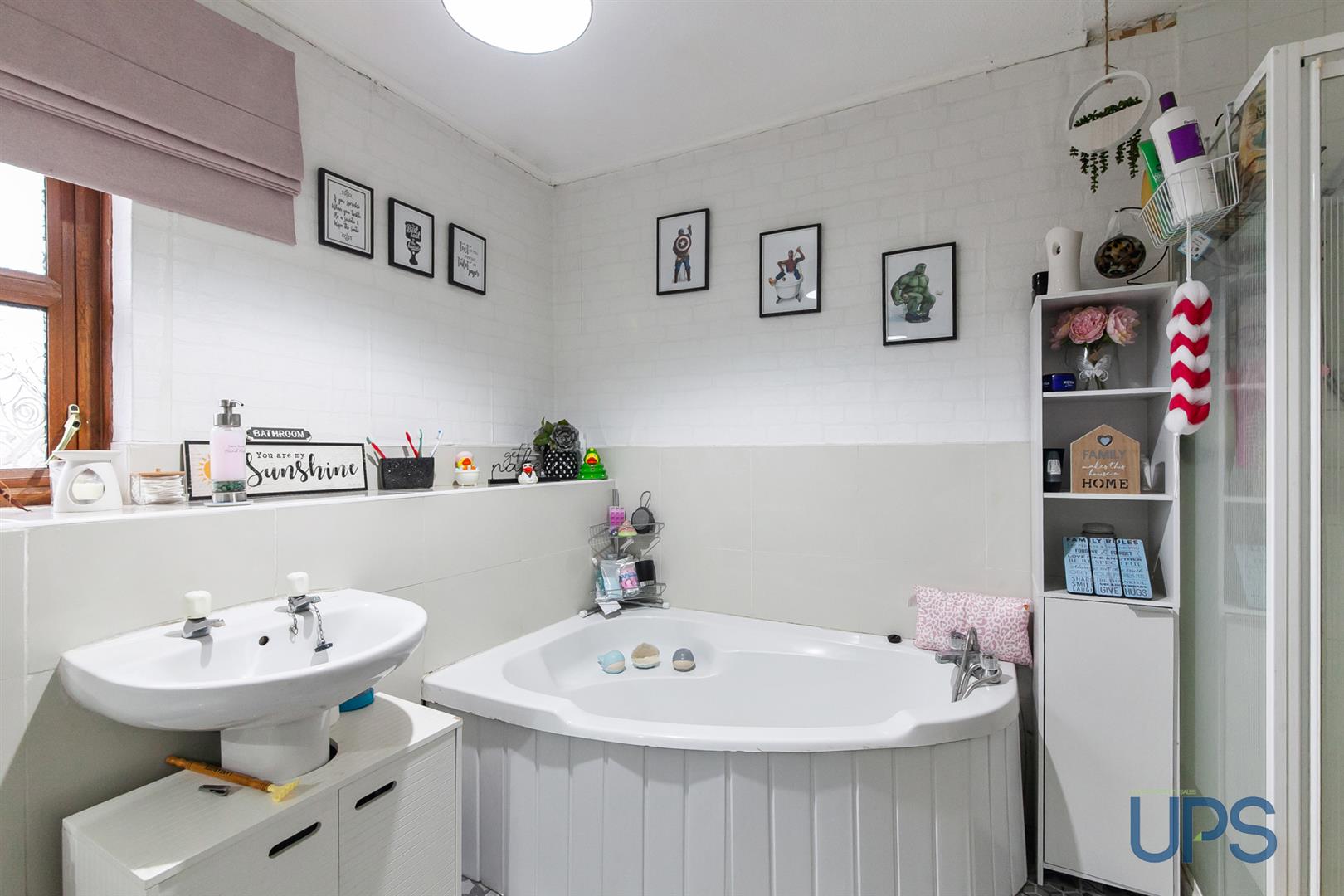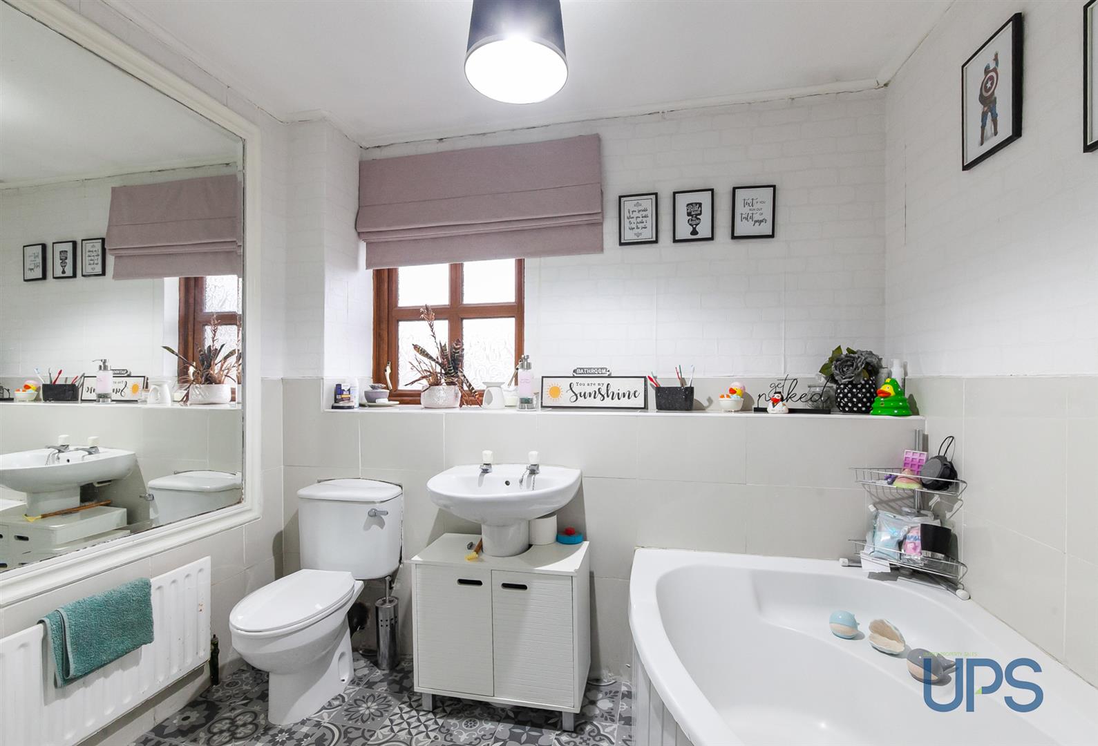 The first floor comprises three well-proportioned bedrooms and a modern white bathroom suite with a separate shower cubicle.