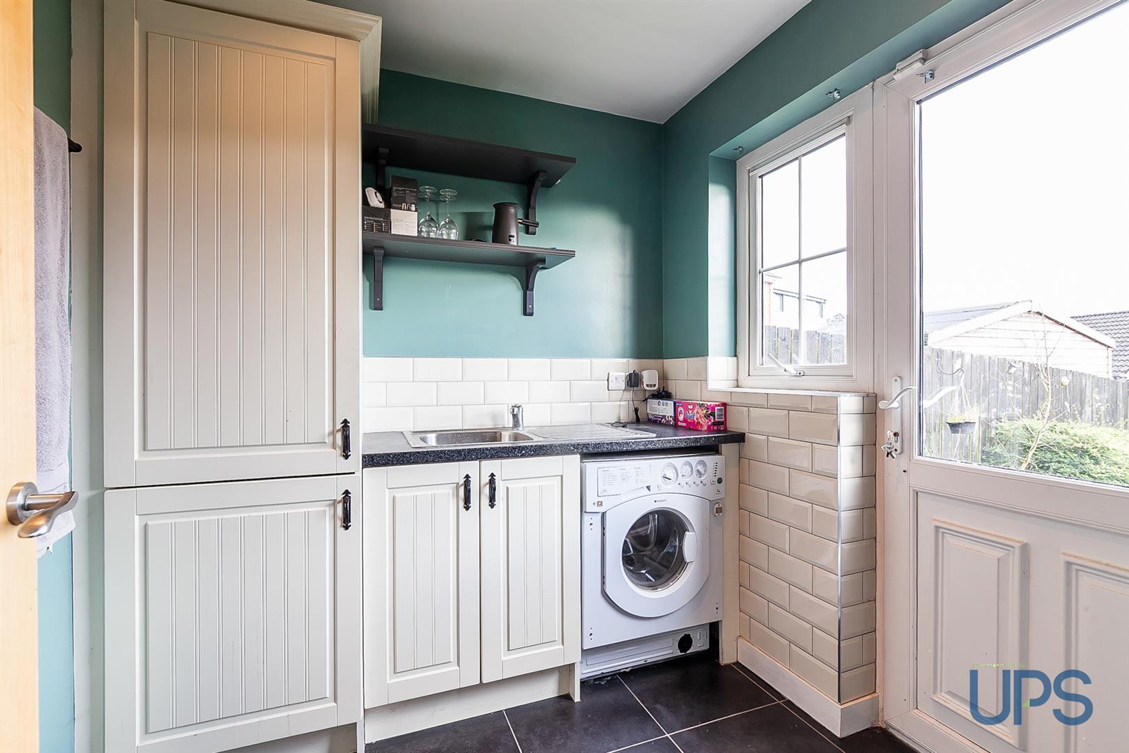 Single drainer stainless steel sink unit, tiling, range of units, ceramic tiled floor, plumbed for washing machine, gas boiler, Upvc double glazed back door.