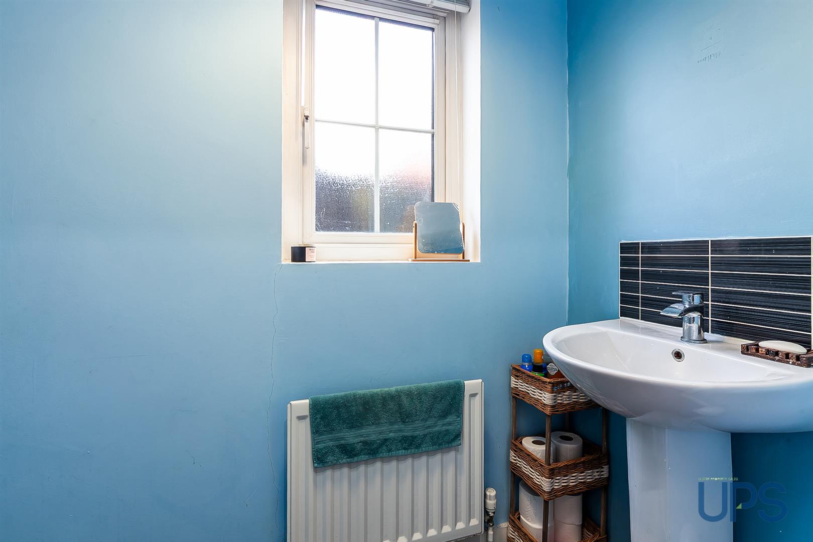 Wooden effect stripped floor, downstairs wc / cloakroom .