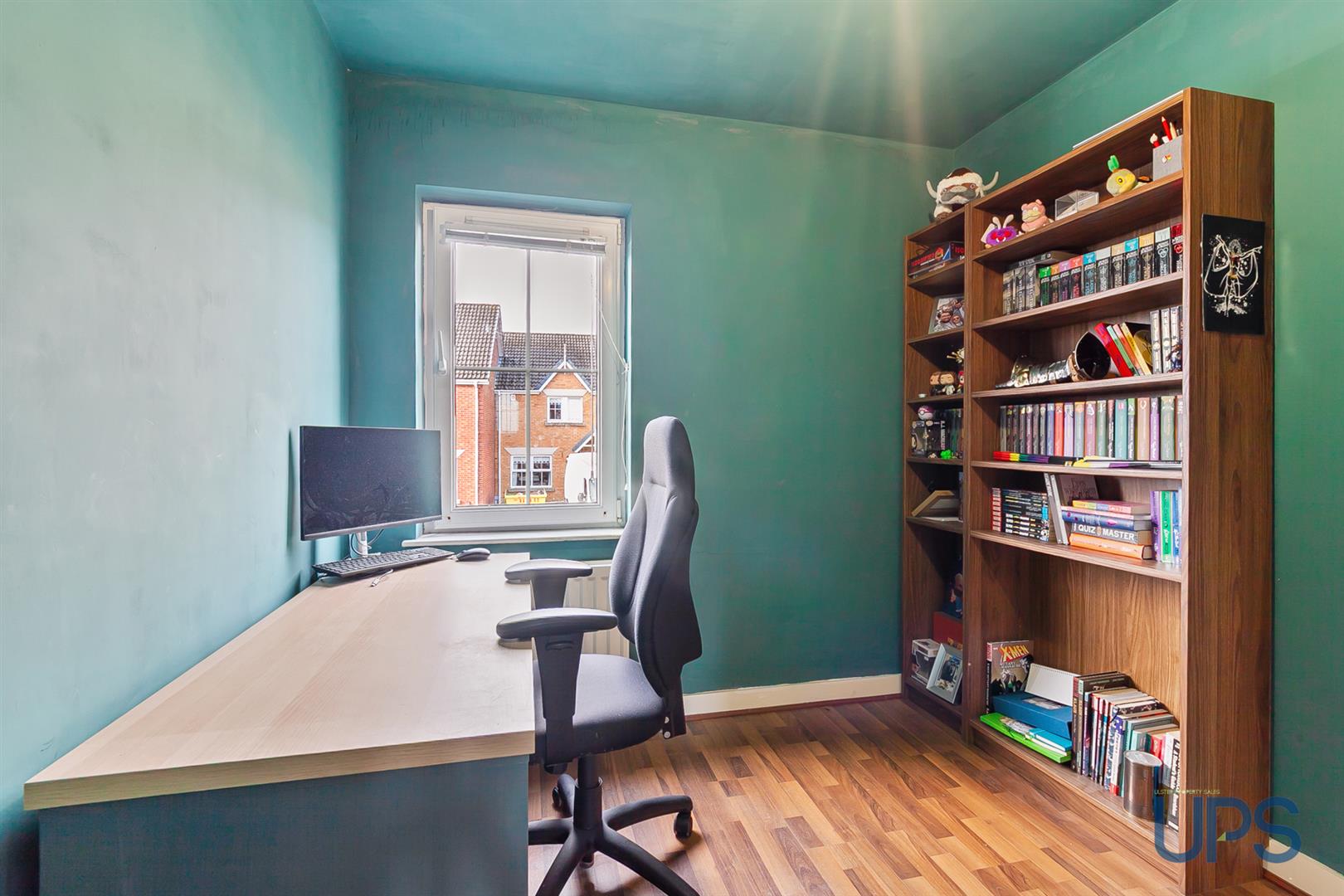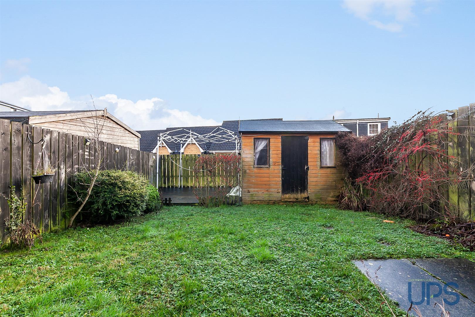 Driveway with parking to front. private and secure rear gardens in lawns, planting and fencing. Feature decking, garden shed / storage.