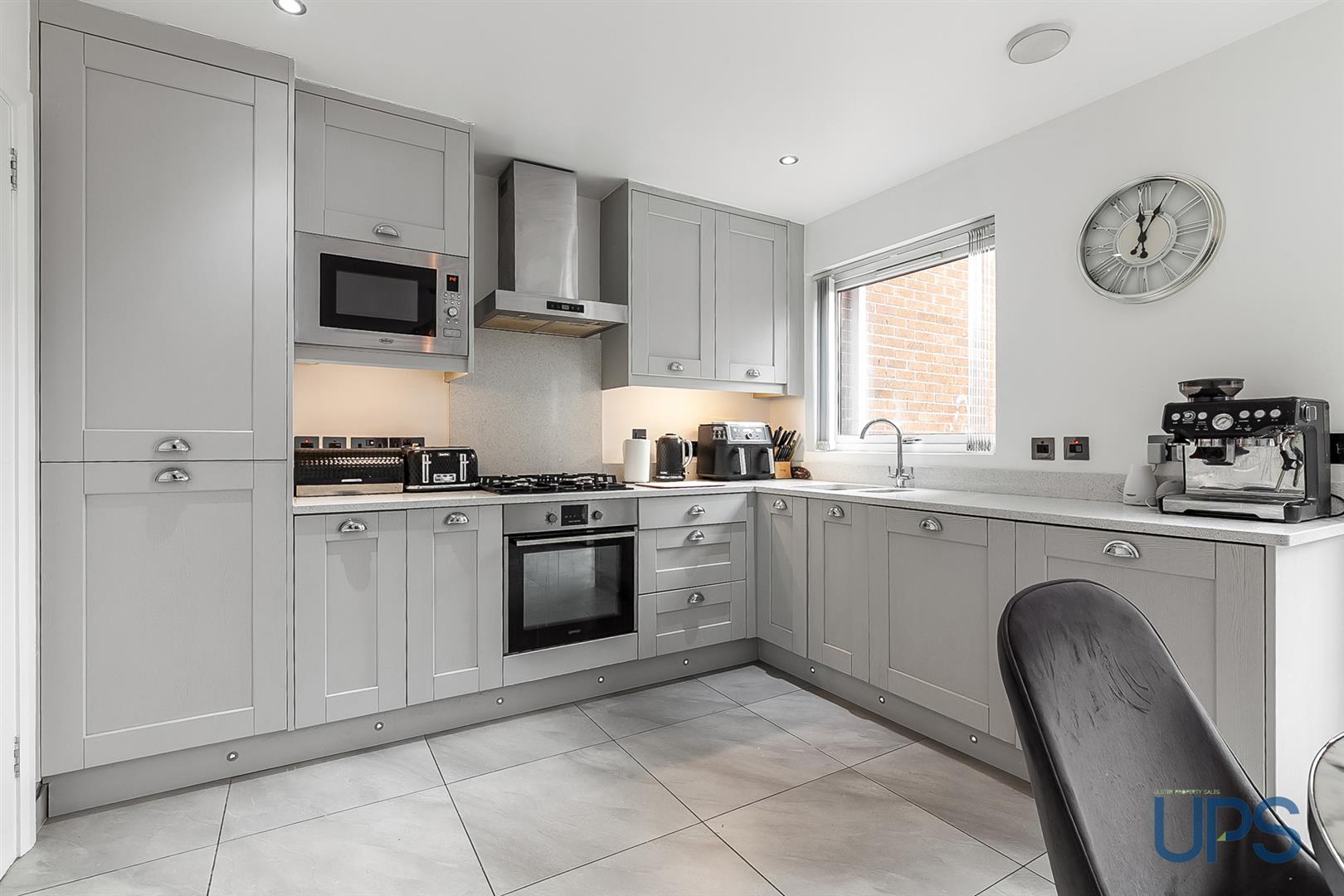 A stylish and recently upgraded mid-terrace home extending to approximately 779 sq ft, ideally located in a highly sought-after residential area. Enjoying an open aspect to the front, this property offers excellent convenience with nearby leisure facilities, schools, shops, and excellent transport links including the Glider service, motorway access, and Dunmurry railway station.