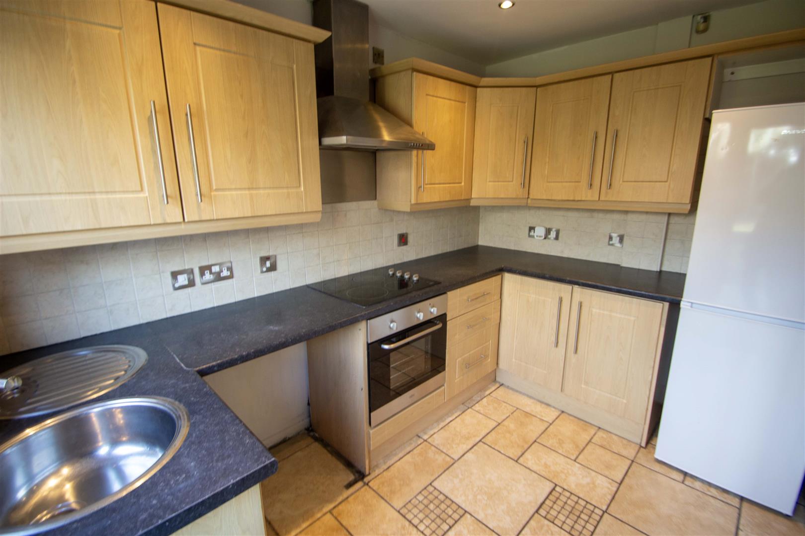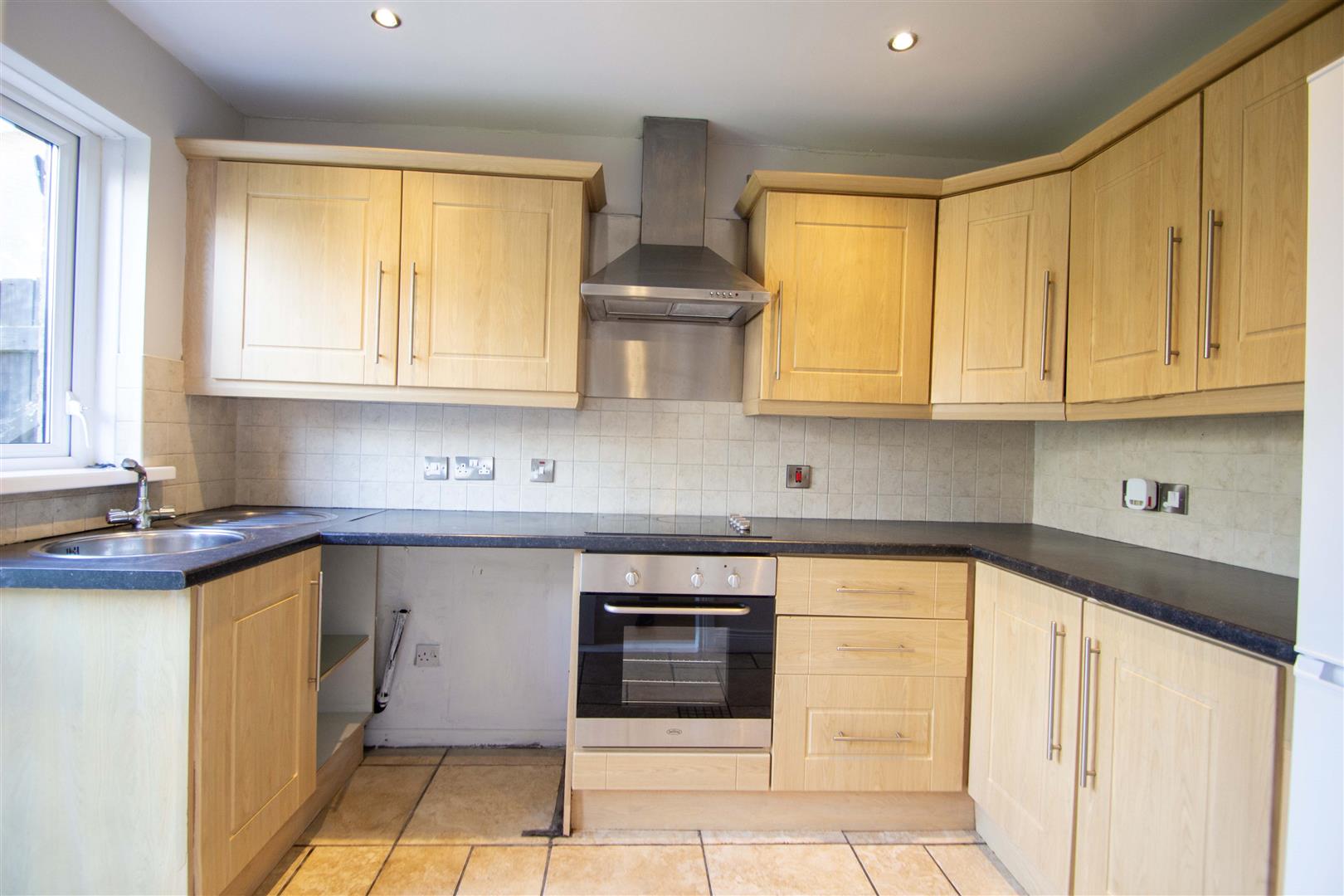 Range of high and low level units. formica work surfaces, feature sink unit, plumbed for washing machine, tiling, tiled floor. Built-in robe, 4 ring hob, over head extractor hood, down lighters, Upvc double glazed back door.