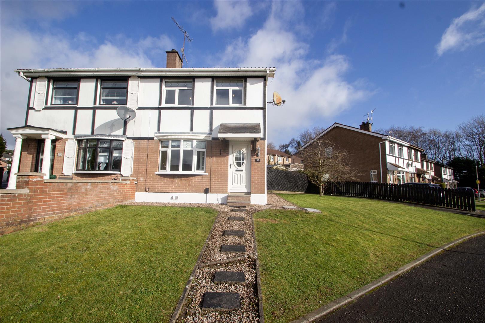 A fresh, well presented attractive semi detached family home that enjoys an extensive, slightly elevated landscaped site within this highly regarded and established cul de sac. Three comfortable bright well appointed bedrooms. Principal bedroom with feature built-in mirrored slide robes. Lounge open plan to casual dining area with feature Upvc double glazed double patio doors with garden access. Luxury fitted kitchen. White bathroom suite. Upvc double glazed windows / doors / eaves and fascia also in Upvc. Oil fired central heating system. Recently painted throughout / feature floor coverings. Extensive landscaped private and secure gardens in neat lawns, flagging and fencing with excellent car parking to side. Fantastic doorstep convenience to include accessibility to leading Schools, Shops and transport links to include the Glider service and major Road network connections all nearby. Only upon viewing can this magnificent first time buy be truly appreciated, well worth a visit. Chain free.