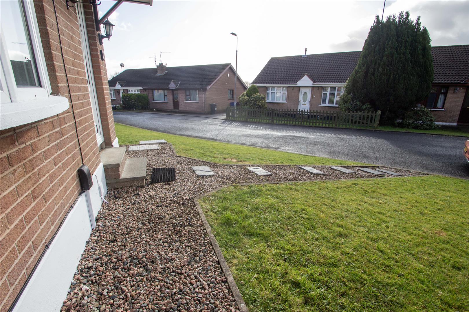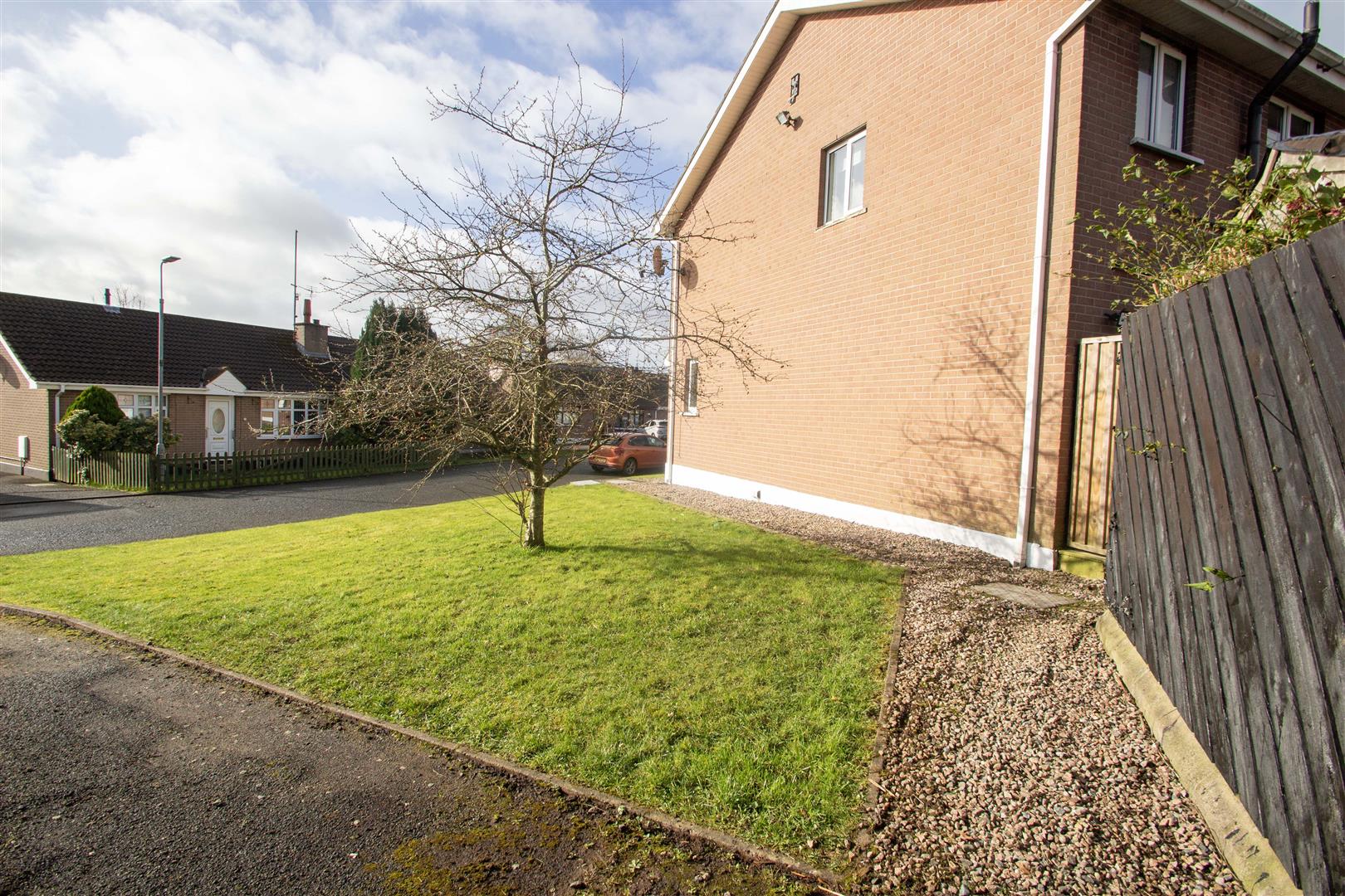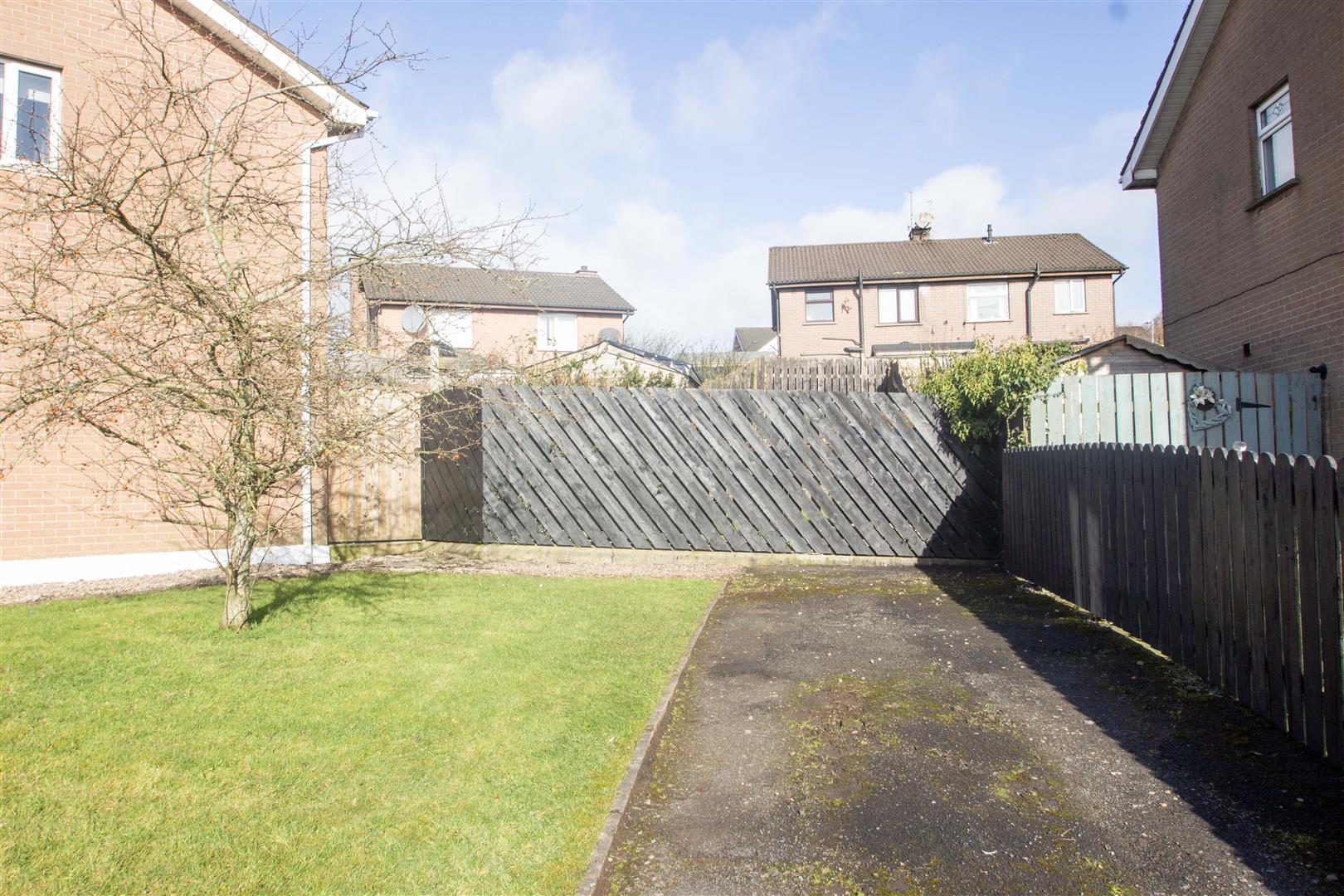 Extensive landscaped gardens in neat lawns, mature planting, feature paving and fencing, housed oil fired boiler, pvc tank. Large garden arear to front, driveway with good car parking to side.