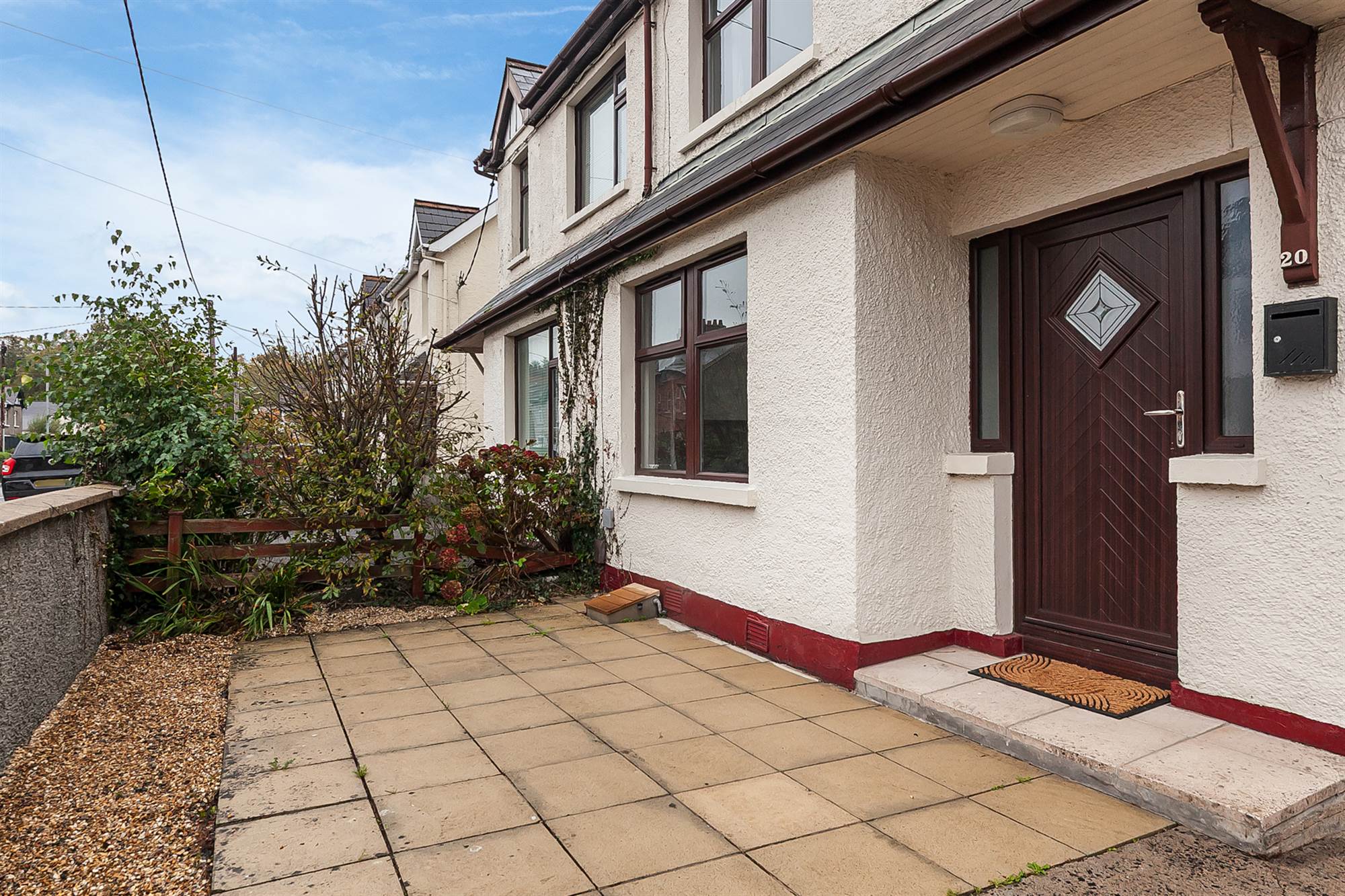 uPVC front door with glass side panels to . . .