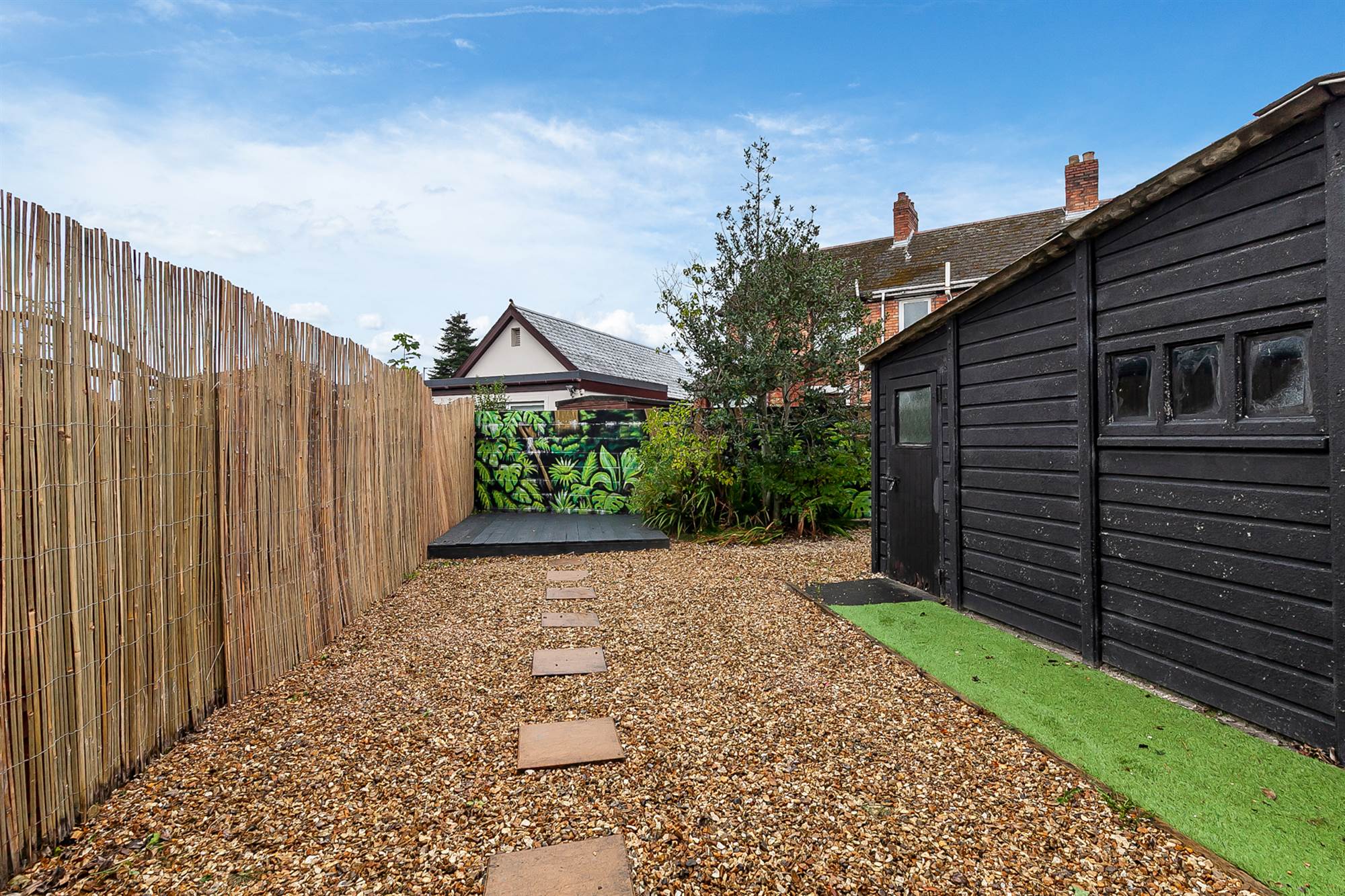 Enclosed rear garden with shed
