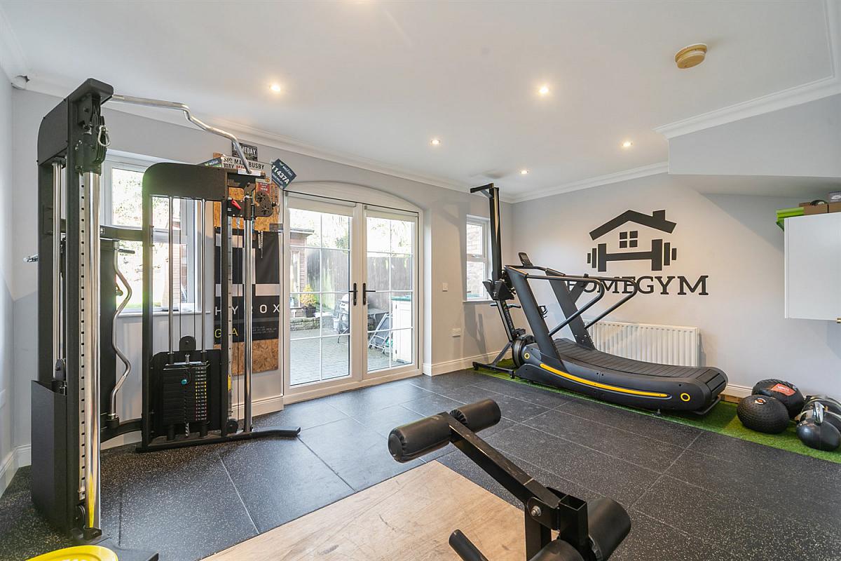 Currently used as a gym. Cornice ceiling. Double doors to rear.