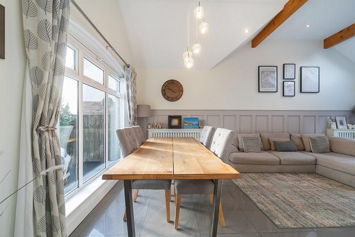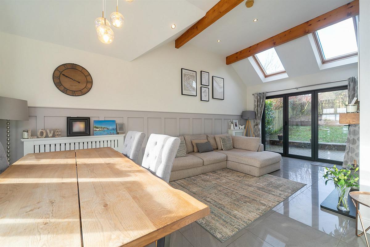 The ground floor accommodation provides, cloakroom with wc, Modern fitted Kitchen leading to an extended Dining and Living Room with vaulted ceiling and bi folding doors leading to the rear garden. There is a Lounge to the rear of the property also with access via double doors to the garden.
