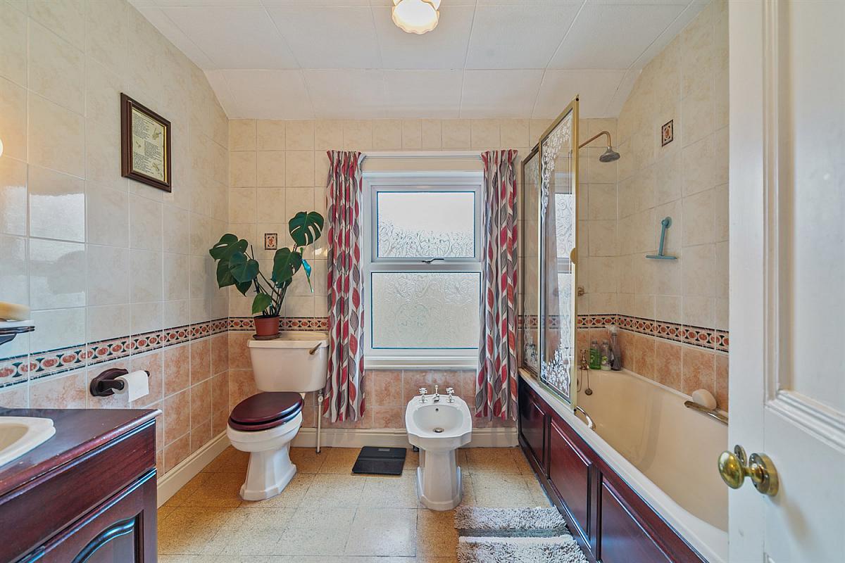 Panel bath with shower over and shower screen, vanity unit, low flush W.C, bidet. Access to roofspace.